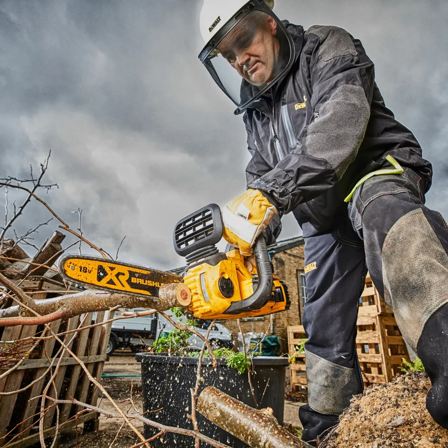 DeWALT kædesav er til dig, der ønsker en effektiv og professionel havemaskine, der hurtigt klarer de fleste saveprojekter i haven. Kædesaven er fremstillet med kulløs motor og robust Oregon-sværd og kæde. Kædesaven passer til 18V batteri og den kraftfulde motor leverer op til 70 snit i 4×4 tømmer med et 5,0 Ah batteri.