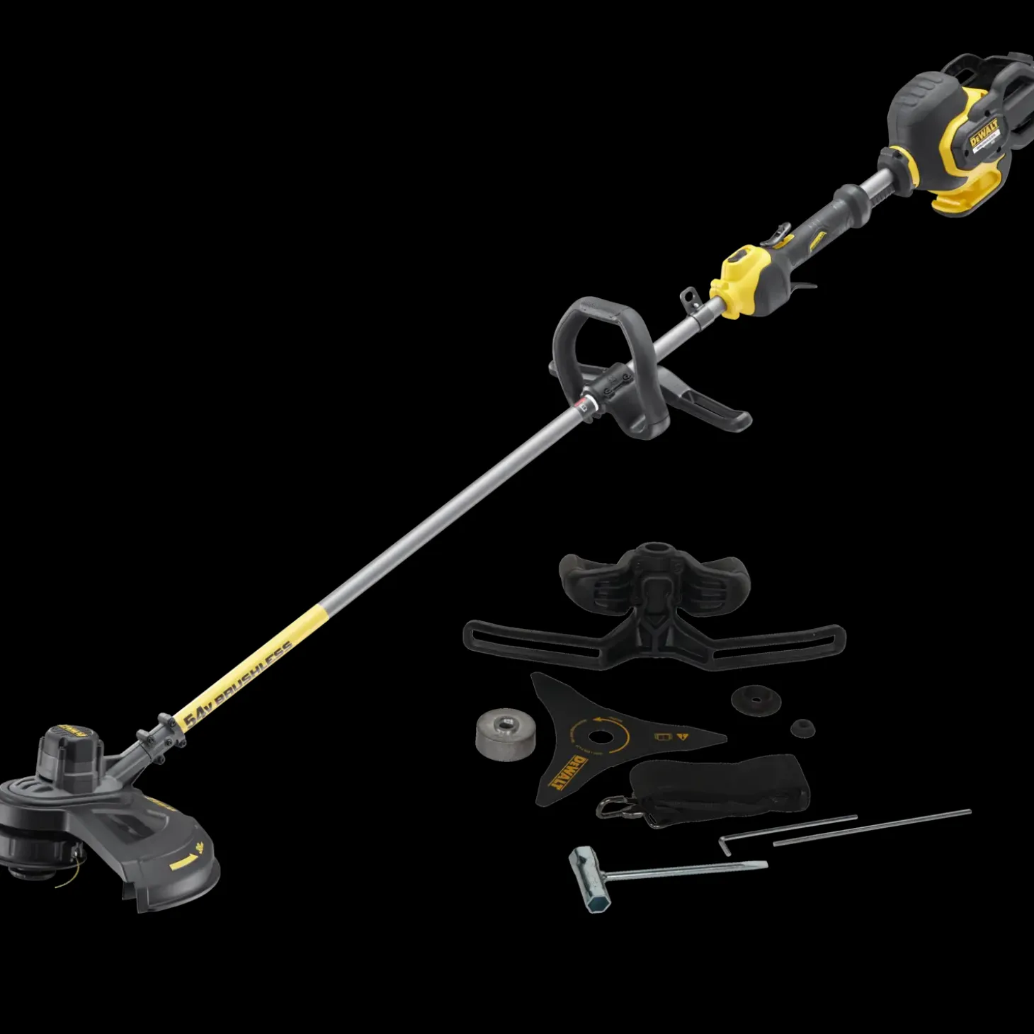 Dewalt græstrimmer/buskrydder leveres med beslag, line Ø2 mm, kniv til buskrydning, skulderstrop og inkluderer adapterkit til buskrydder og buskrydderkniv