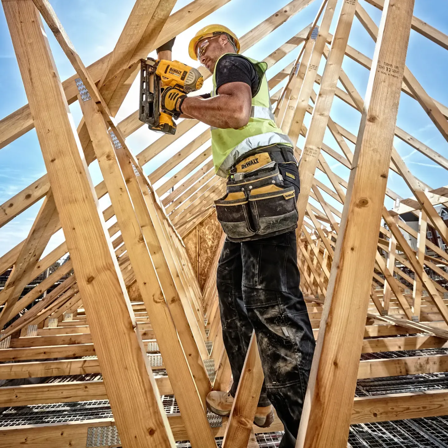 - Vendbar bæltekrog til transport på byggepladsen eller ophængning på rafter
