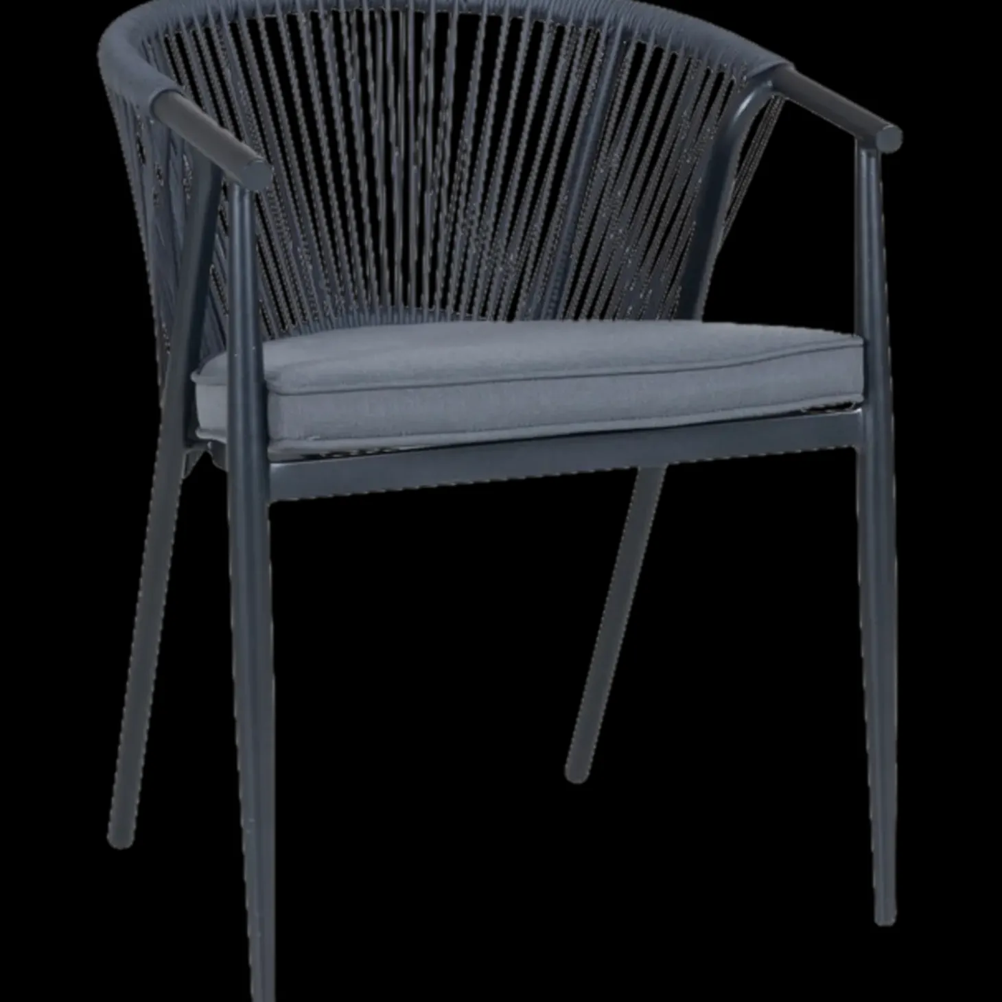 Stabelbar stol med grå rebflet og aluminiumstel. Inkl. hynde
