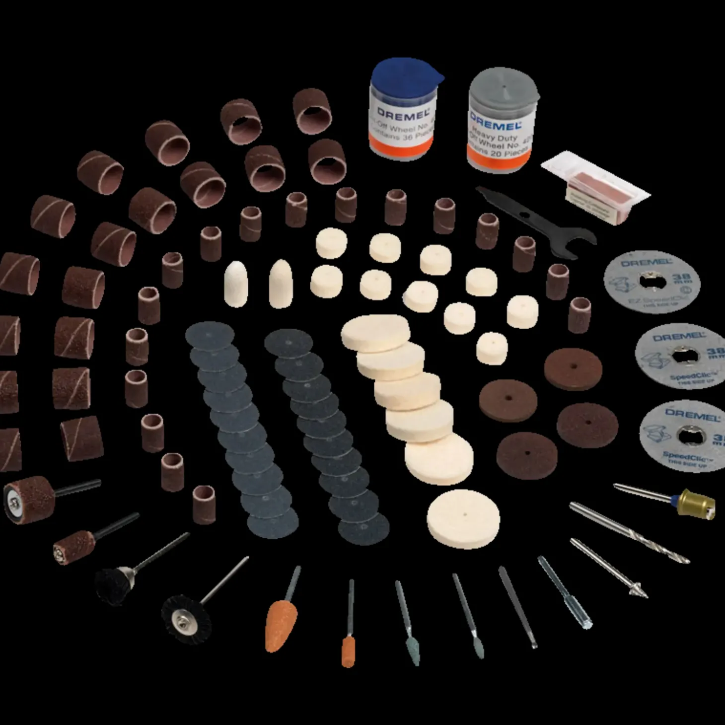 Dremel multifunktionssæt 724 med 150 førsteklasses originale Dremel-tilbehørsdele inklusive EZ SpeedClic-tilbehør, som sikrer, at du kan skifte tilbehør hurtigt og enkelt.