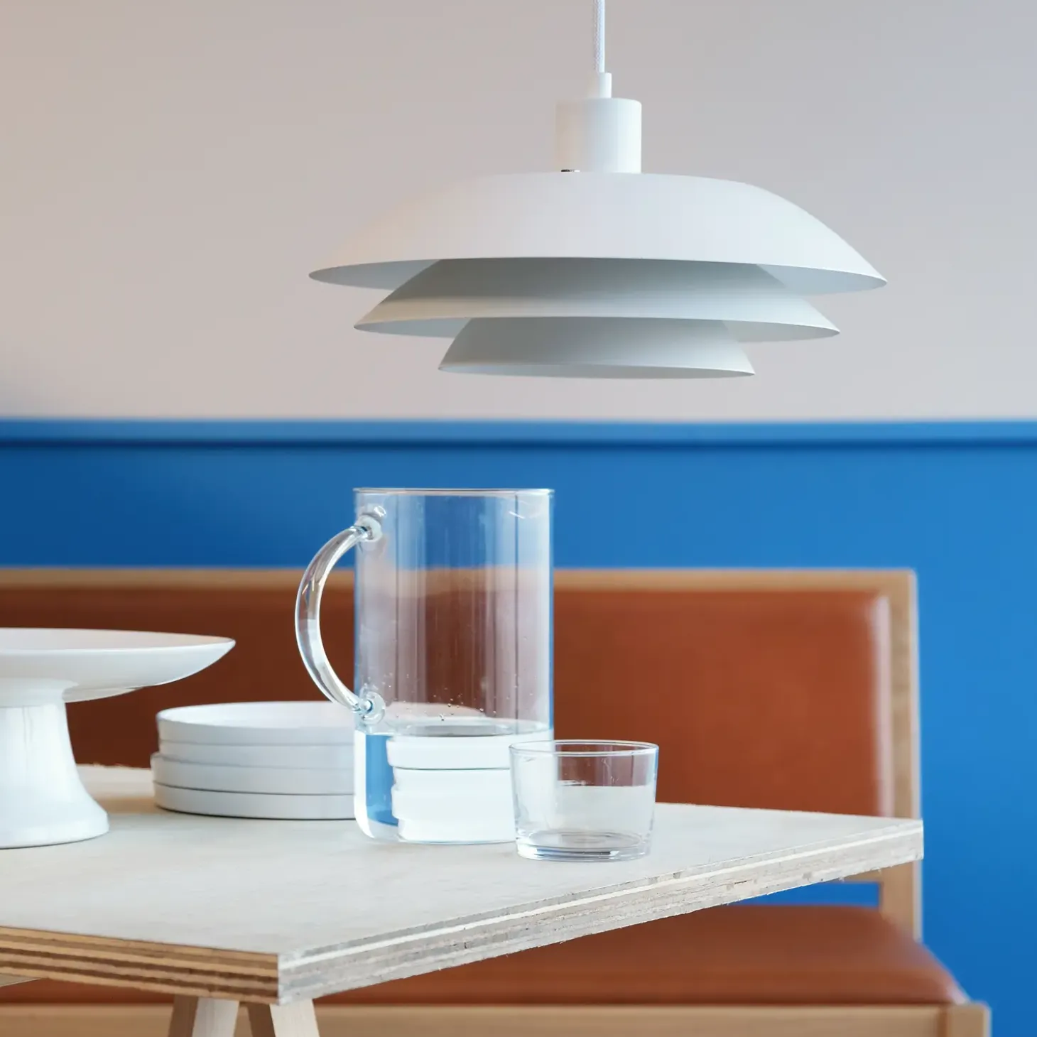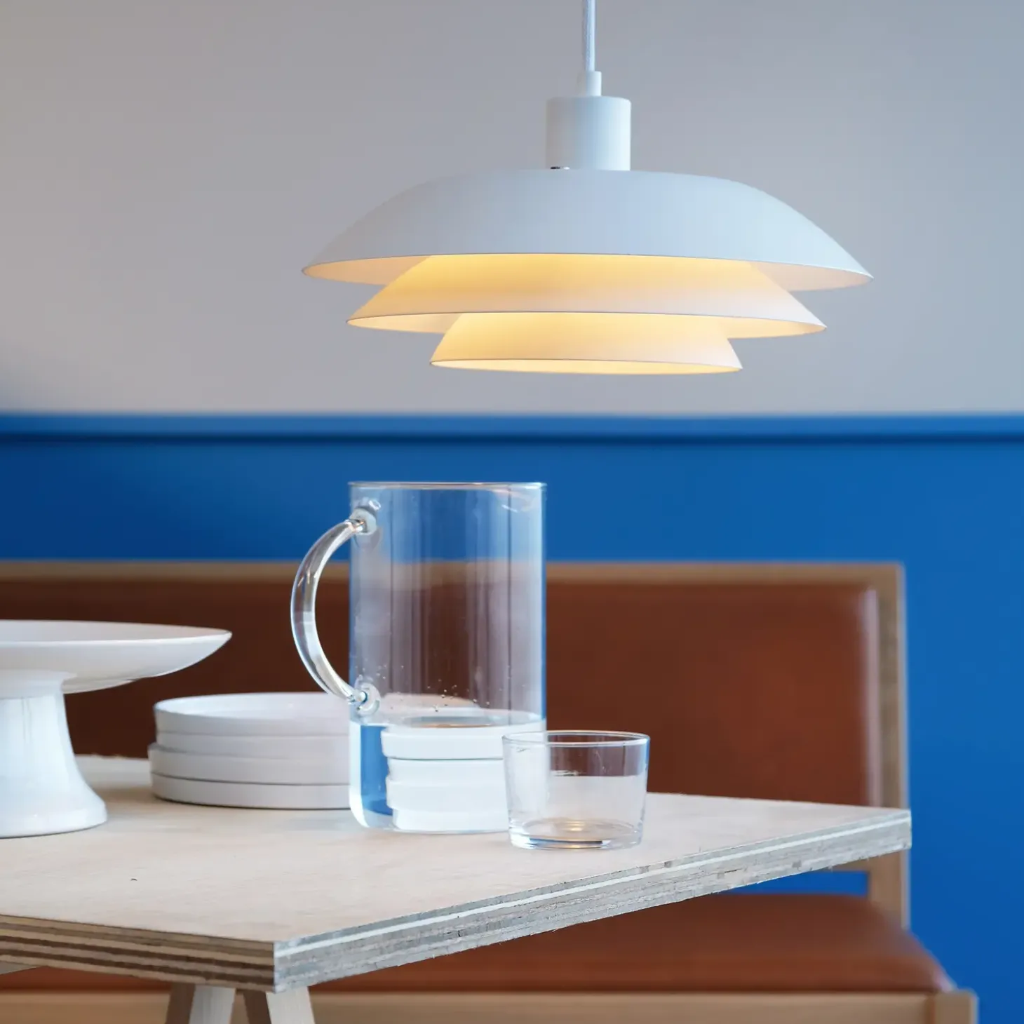 Designet med en karakteristisk tredelt skærm, som sørger for en optimal lys fordeling i rummet. Uanset om den skal oplyse middagsbordet, sofahjørnet eller skrivebordet, giver DL 45 et blødt og indbydende lys, som skaber den helt rette harmoni.