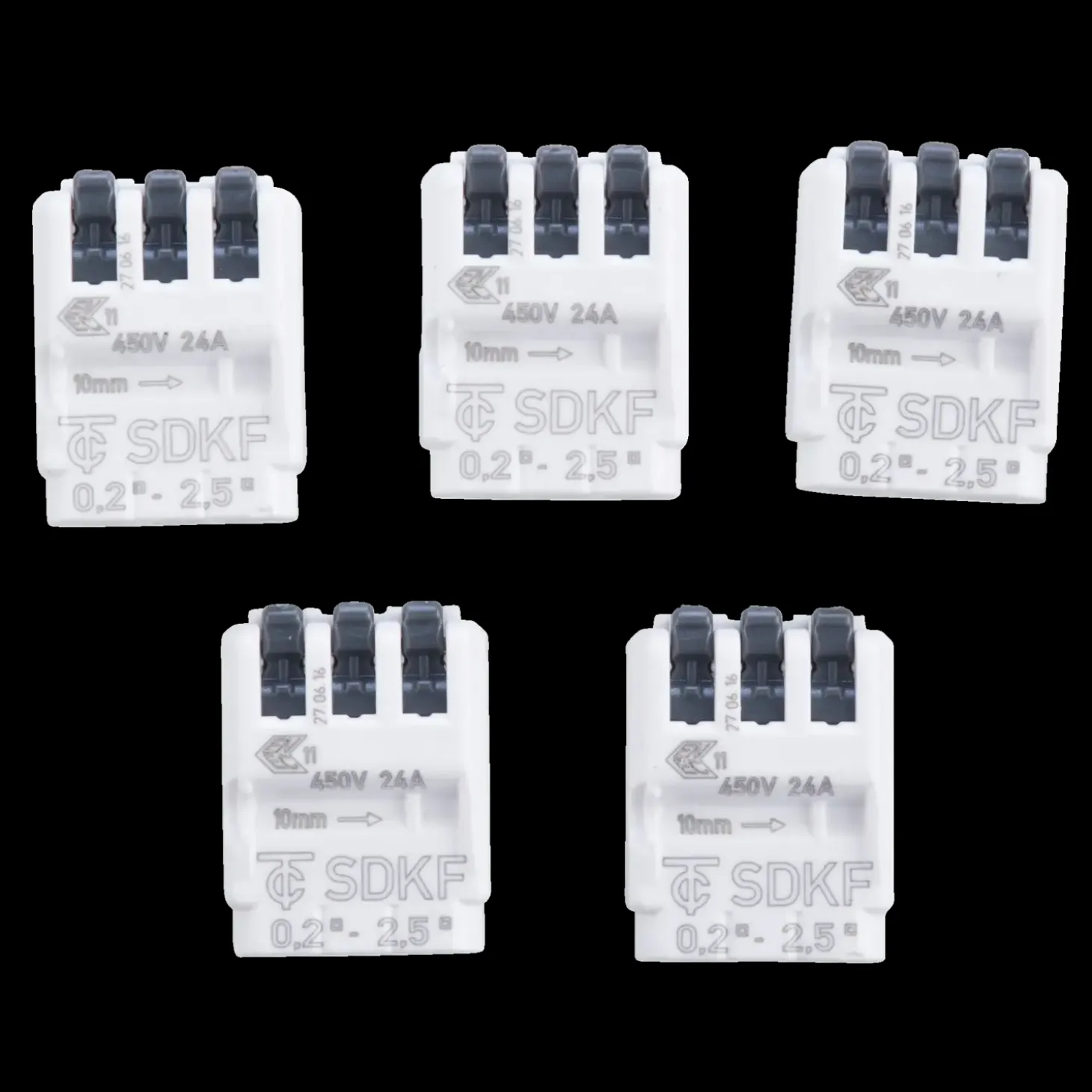 E-Line Fjedersamlemuffe 3-Polet. Anvendes til nem og hurtig samling af ledninger uden skruer.