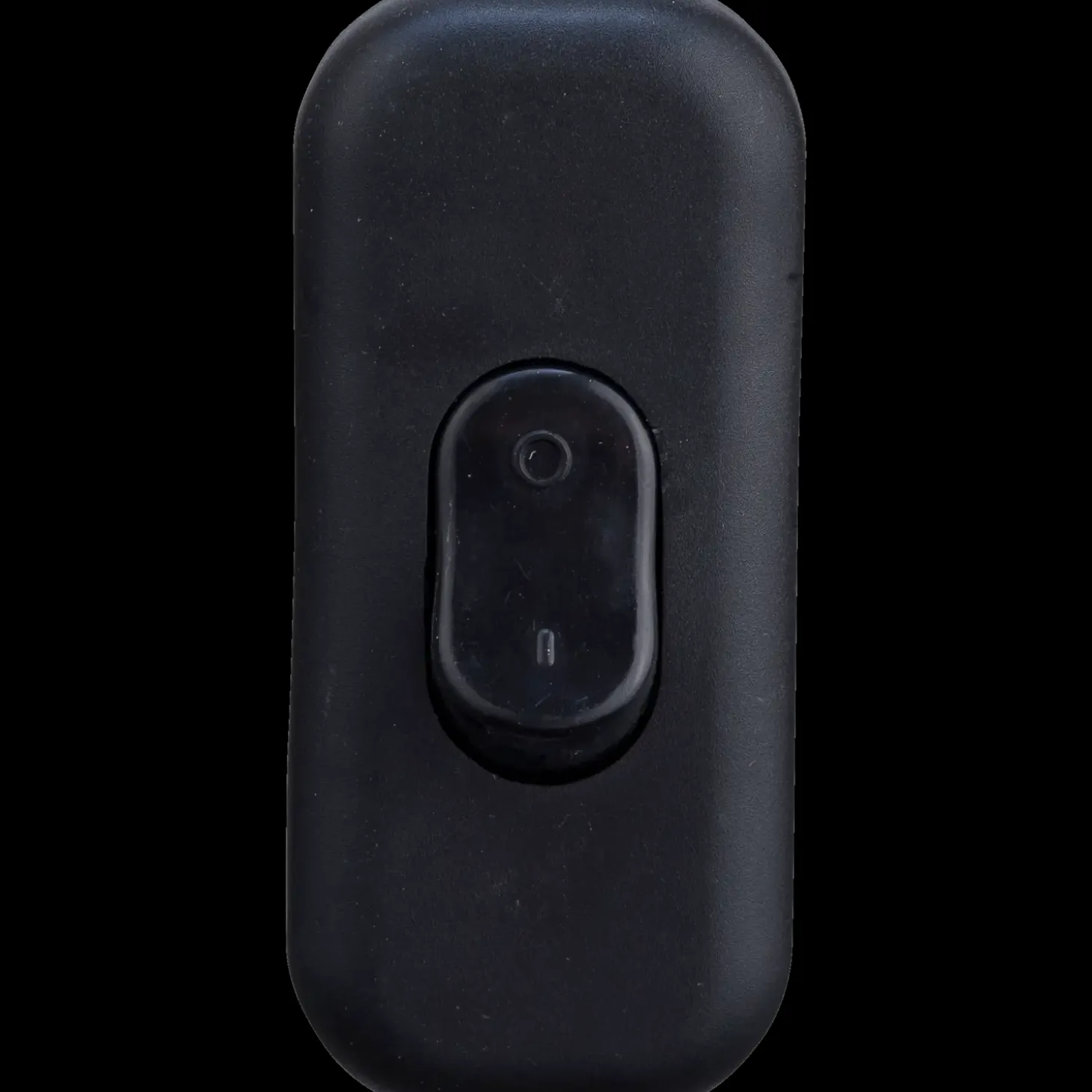 Gennemgangsafbryder til tænd og sluk af f.eks. lamper. Monteres på lampeledning flad/rund 2×0,75mm². 230V 2A 460W. Sort.