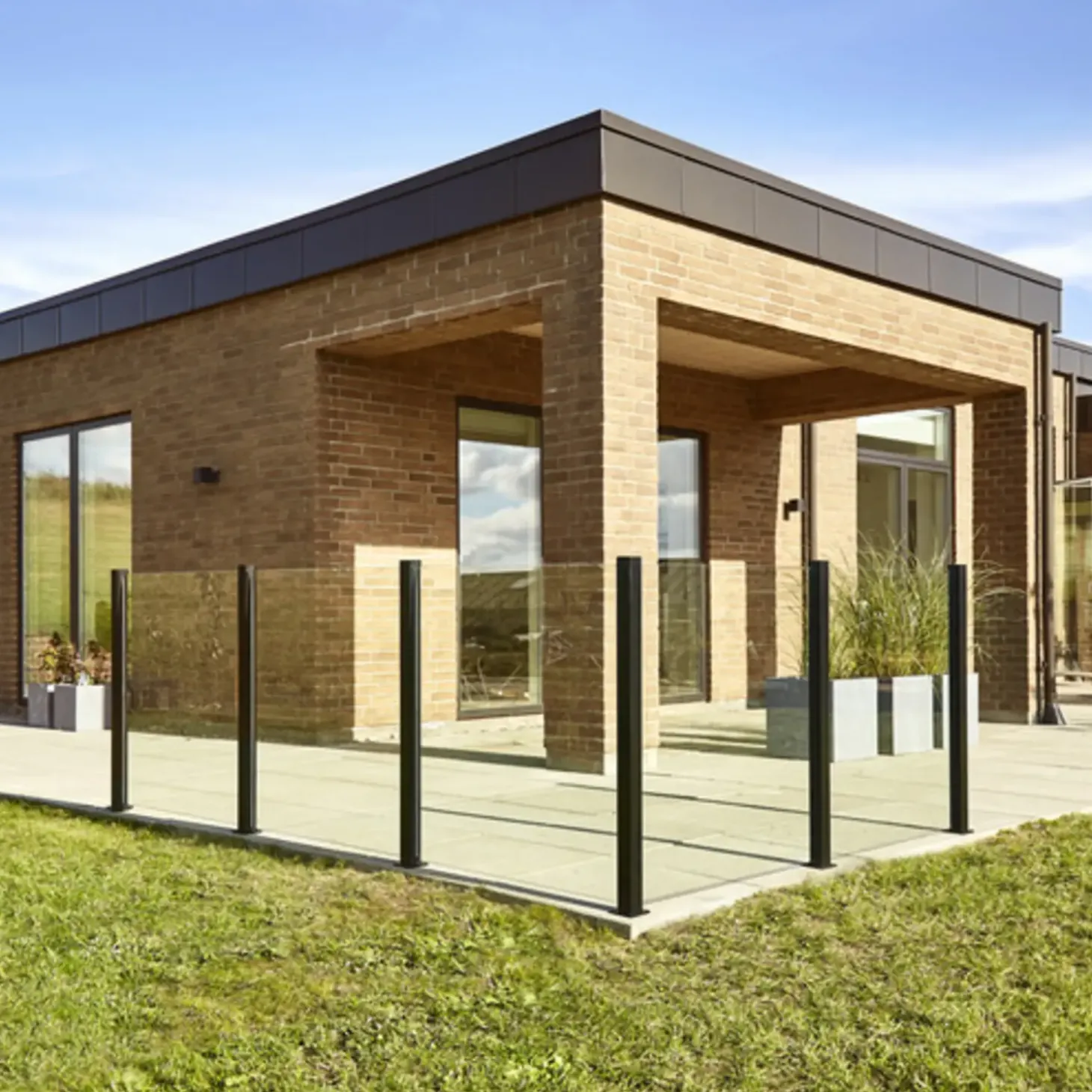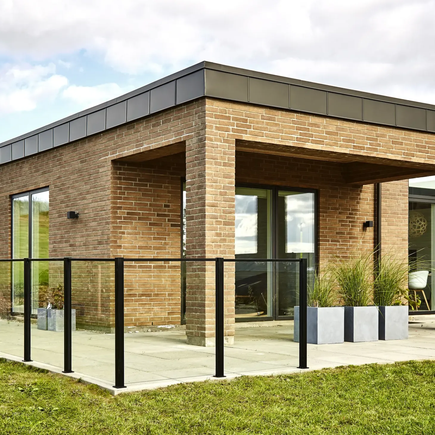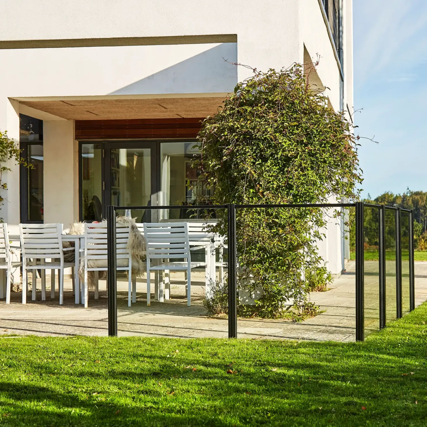 Vedligeholdelsesfrit, stilrent Elmholm komposit hegn med klar glas