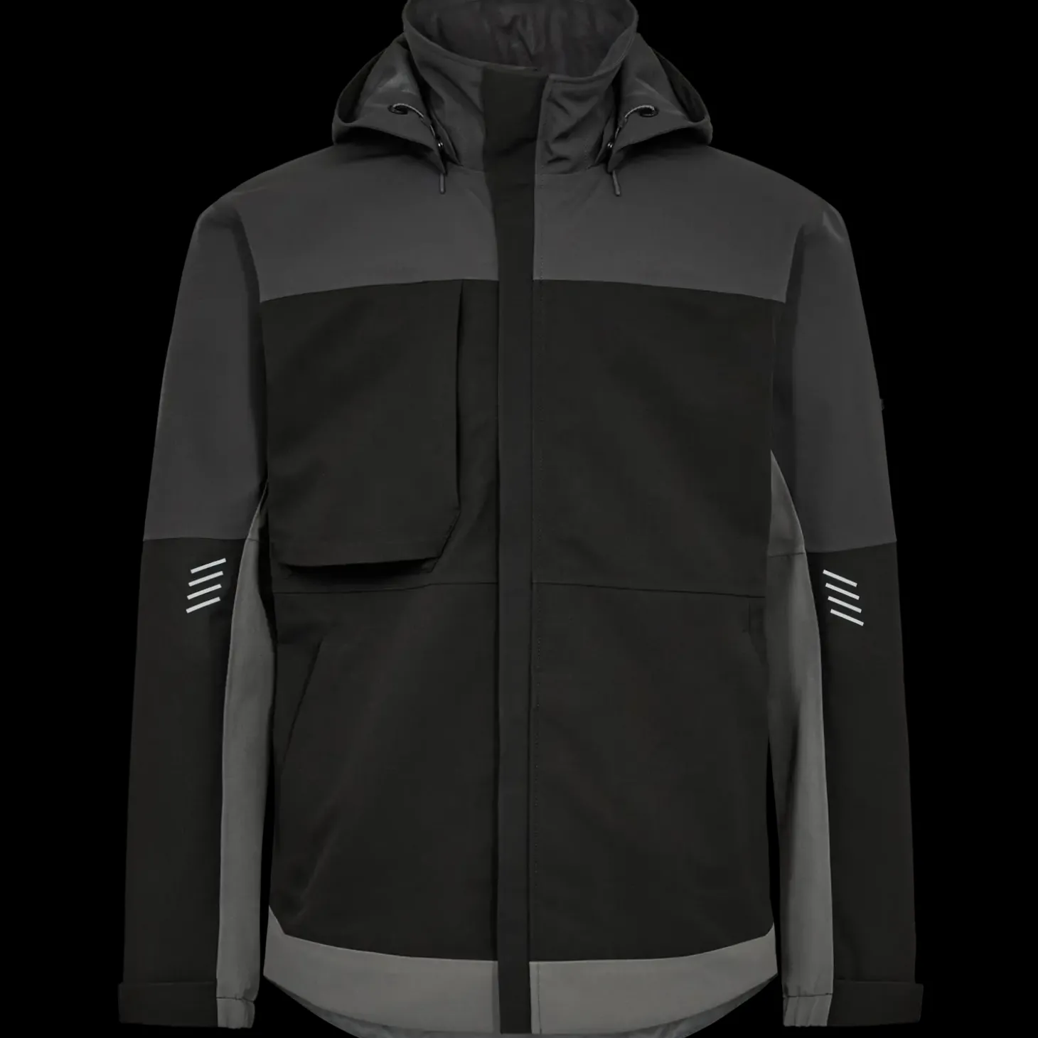 Denne skaljakke er designet med fokus på funktionalitet og komfort. Den er fremstillet i Ripstop med mekanisk stretch for øget bevægelighed. Jakken er både vand og vindtæt og har tapede sømme for ekstra beskyttelse. For øget komfort har jakken en blød og vindbeskyttende inderkrave. Den praktiske og aftagelige hætte gør jakken yderst anvendelig i mange forskellige arbejdssituationer. Jakken har desuden skjult lynlås foran med en smal stolpelukning som beskytter mod ridser. De mange praktiske lommer giver sikker opbevaring, herunder en rummelig brystlomme og to sidelommer med lynlås samt en praktisk inderlomme med velcrolukning. En D-ring i højre sidelomme gør det nemt f.eks. at fastgøre f.eks. ID-kort. For at sikre en perfekt pasform har jakken elastik og velcrojustering nederst ved ærmerne, så den kan tilpasses individuelt. Refleksprint på ærmerne og ryggen øger synligheden i mørke omgivelser, mens det forlængede bagstykke yder ekstra beskyttelse af lænden. Der er ligeledes god plads til firmaprofilering.