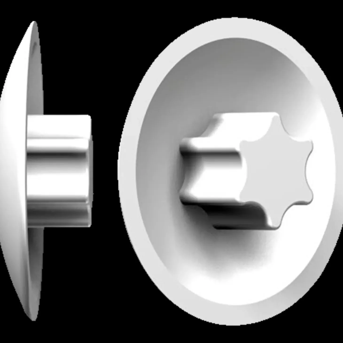 Dækhætter i plast til brug ved afdækning af skruehoveder med TX kærv.