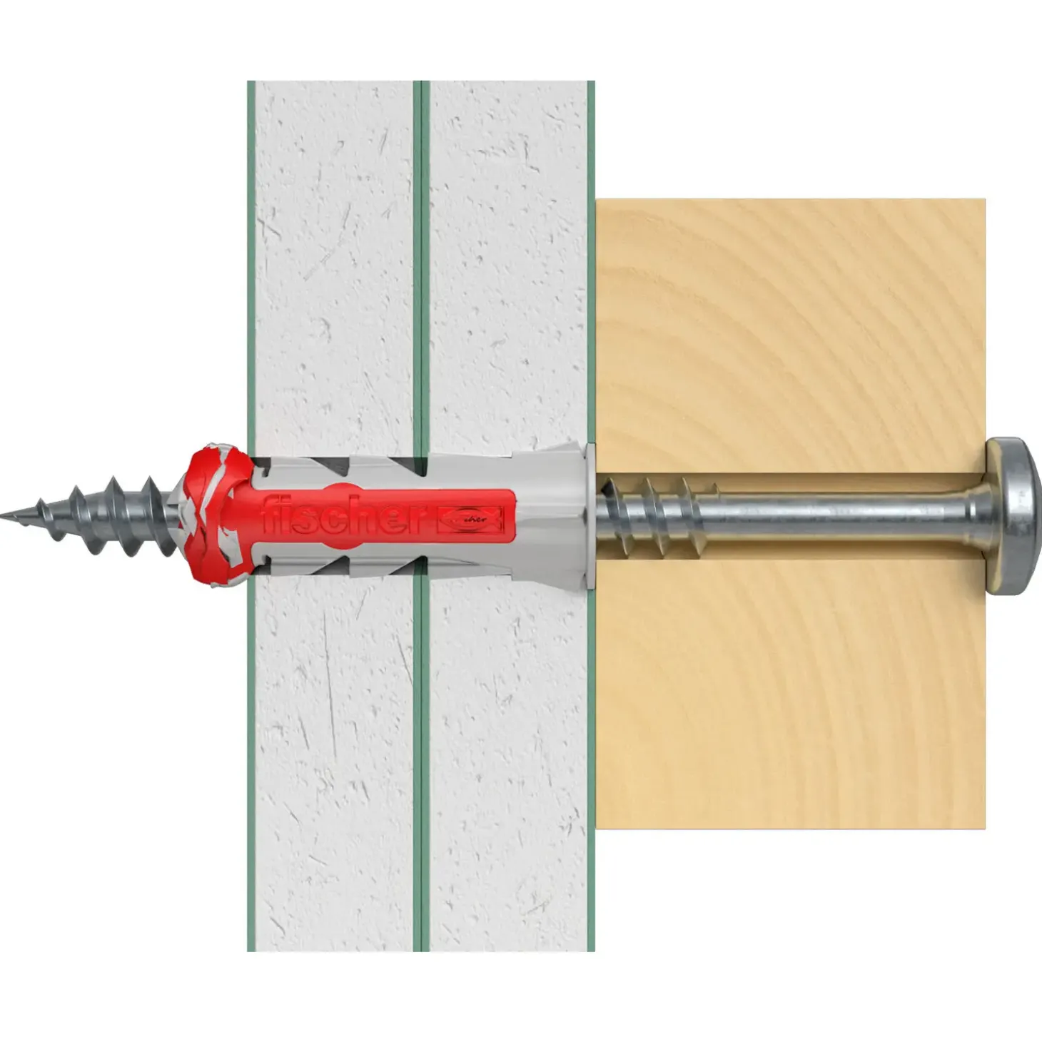 fischer DuoPower kombinerer styrke med sikkerhed. Pluggen består af nylon af særlig høj kvalitet og dens fleksible design består af to komponenter, hhv. en grå og en rød. Afhængigt af byggematerialet, aktiverer den grå komponent den optimale produktfunktion (udvidelse, foldning, sammenføjning) for det bedste hold. Ekspansionsvingerne på den røde komponentdel understøtter den grå komponent og tilbyder ekstra sikkerhed. DuoPower muliggør en nem iskruning af skruer og korrekt stramning ved afslutning. Skruer må ikke overstrammes. Kanten på pluggen sikrer at pluggen ikke glider ind i borehullet.