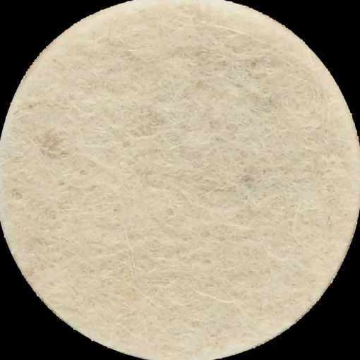 “Rund selvklæbende filtpude, hvid. Til indendørs brug. Bruges til at undgå skåle, vaser, fade, lysestager mv. ridser bordpladen.”