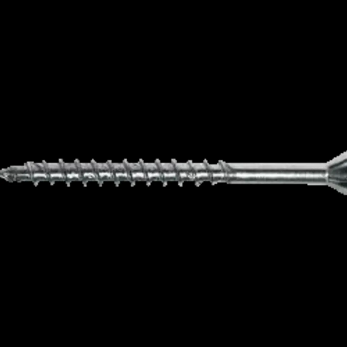 FPF-LT A4P terrasseskrue med linsehoved i rustfri A4, syrefast stål byder på en høj modstandsdygtighed over for vejr og garvesyre. Disse egenskaber forlænger skruens holdbarhed.