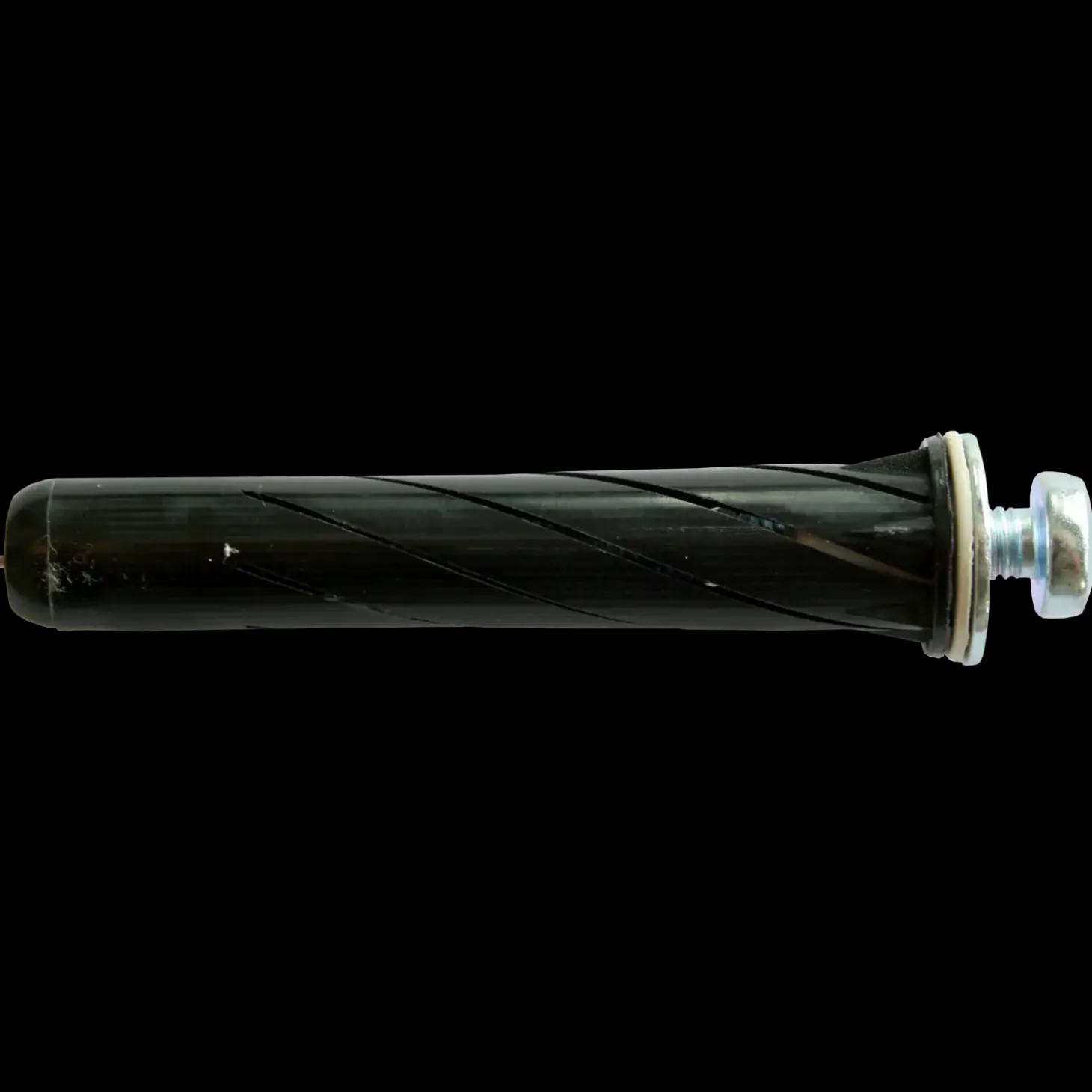 Nylonhulrumsdyvel med metrisk skrue. Dyvlen danner knude på bagsiden af byggematerialet.
