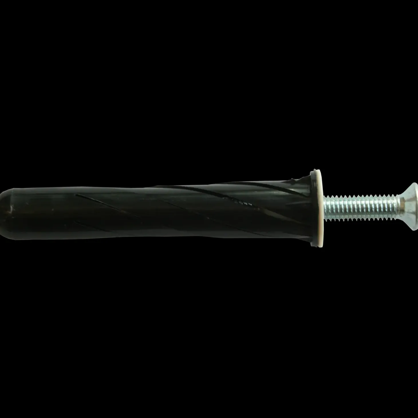 Nylonhulrumsdyvel med metrisk skrue. Dyvlen danner knude på bagsiden af byggematerialet.
