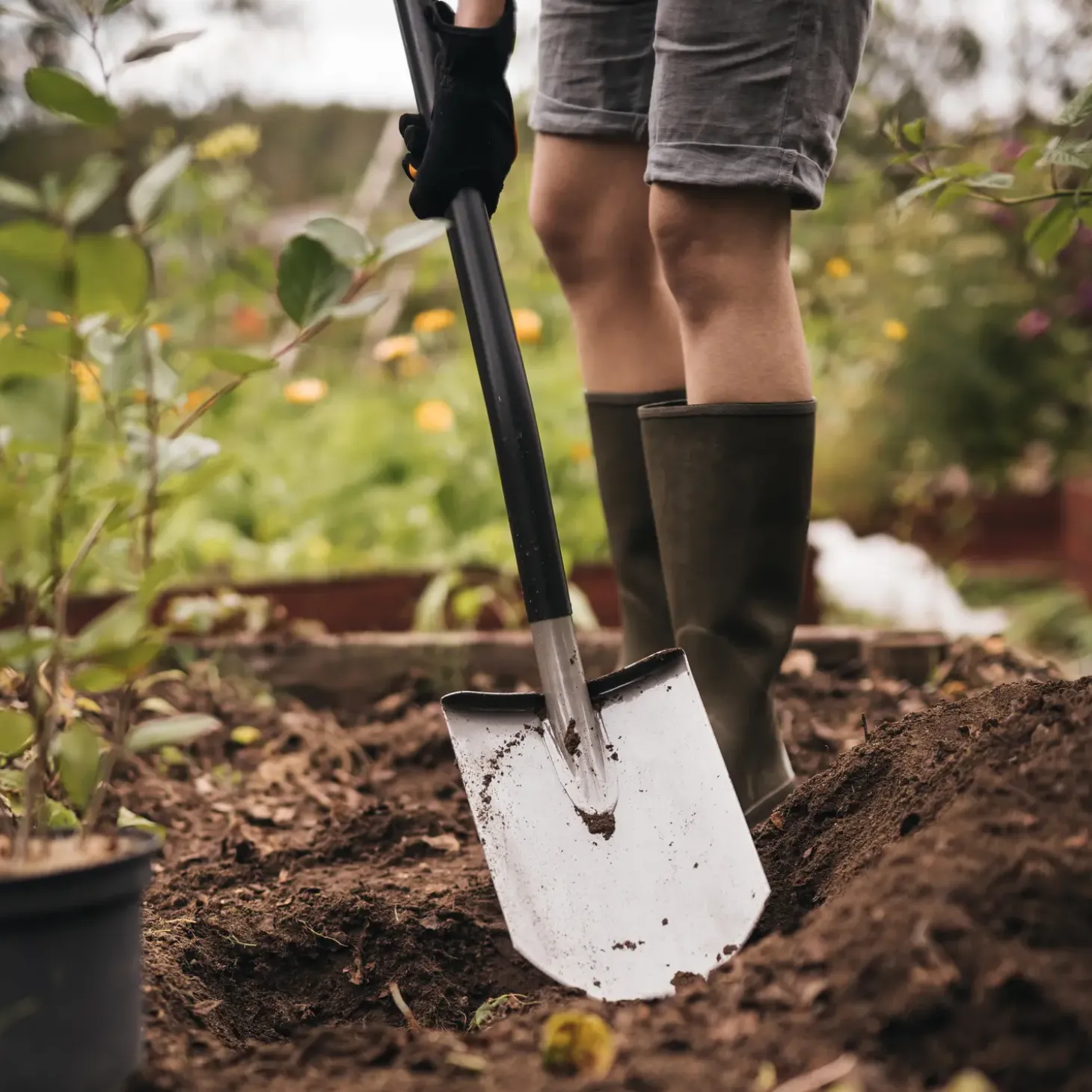 - Den skarpe kant er ideel til at lufte, blande og vende jord, skære igennem rødder og grave i stenet, leret og hård jord
