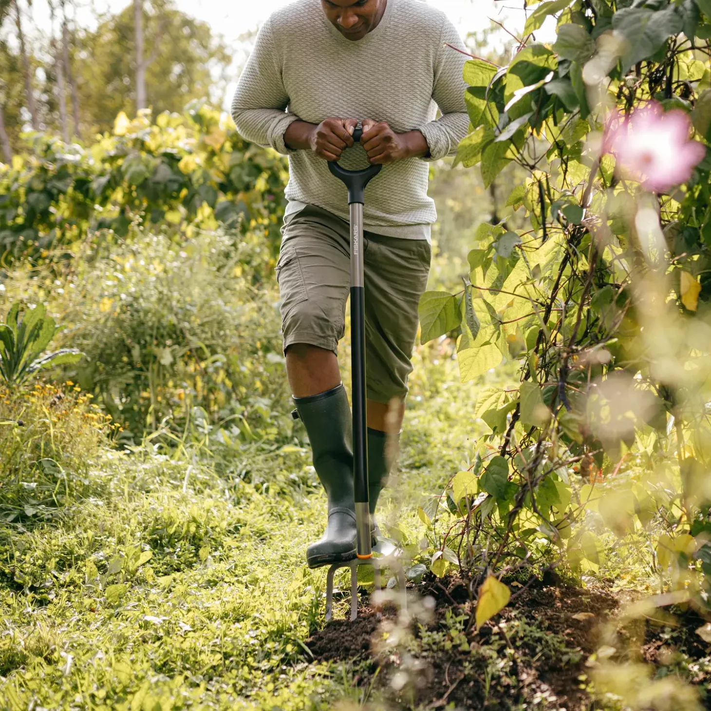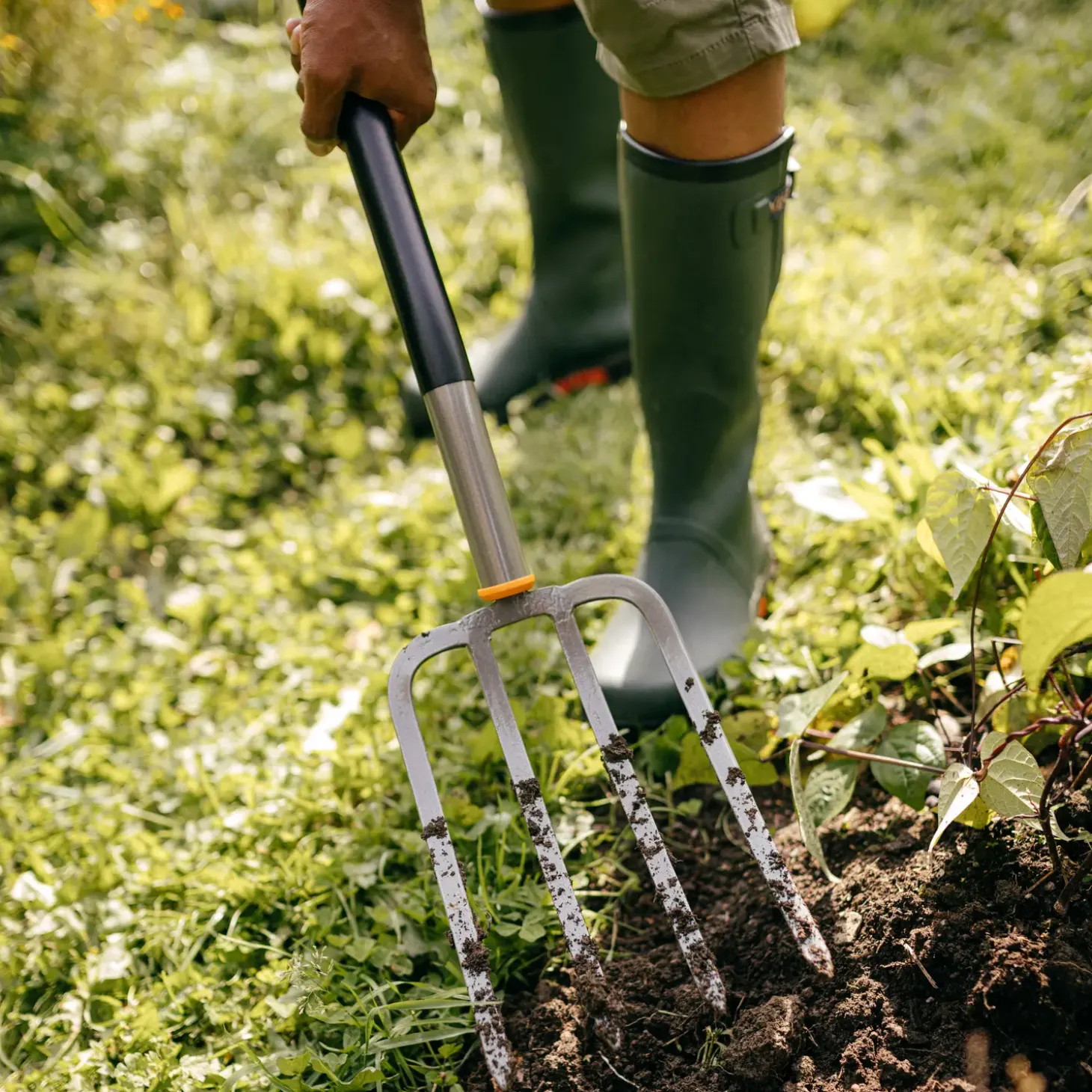 Fiskars Ergonomic™ redskaber er designet til optimal komfort og til at mindske belastningen af kroppen under arbejdet, så du kan klare mere. Ergonomic™ havegreben er det perfekte redskab til at bryde igennem hård jord og flytte større bunker af materialer såsom blade, dækmaterialer, hø og nyslået græs. Havegrebens vinklede skaft og håndtag sørger for at holde din krop og dine håndled i en naturlig stilling ved løft, hvilket mindsker belastningen af kroppen under arbejdet. Det D-formede håndtag passer til alle størrelser hænder, med og uden handsker. En solid overgang mellem de smedede ståltænder og skaftet øger holdbarheden ved arbejde i hård jord. Det dråbeformede smedede stålskaft med SoftGrip er også ekstremt holdbart, samtidig med at det giver et bedre greb og isolerer mod kulde.