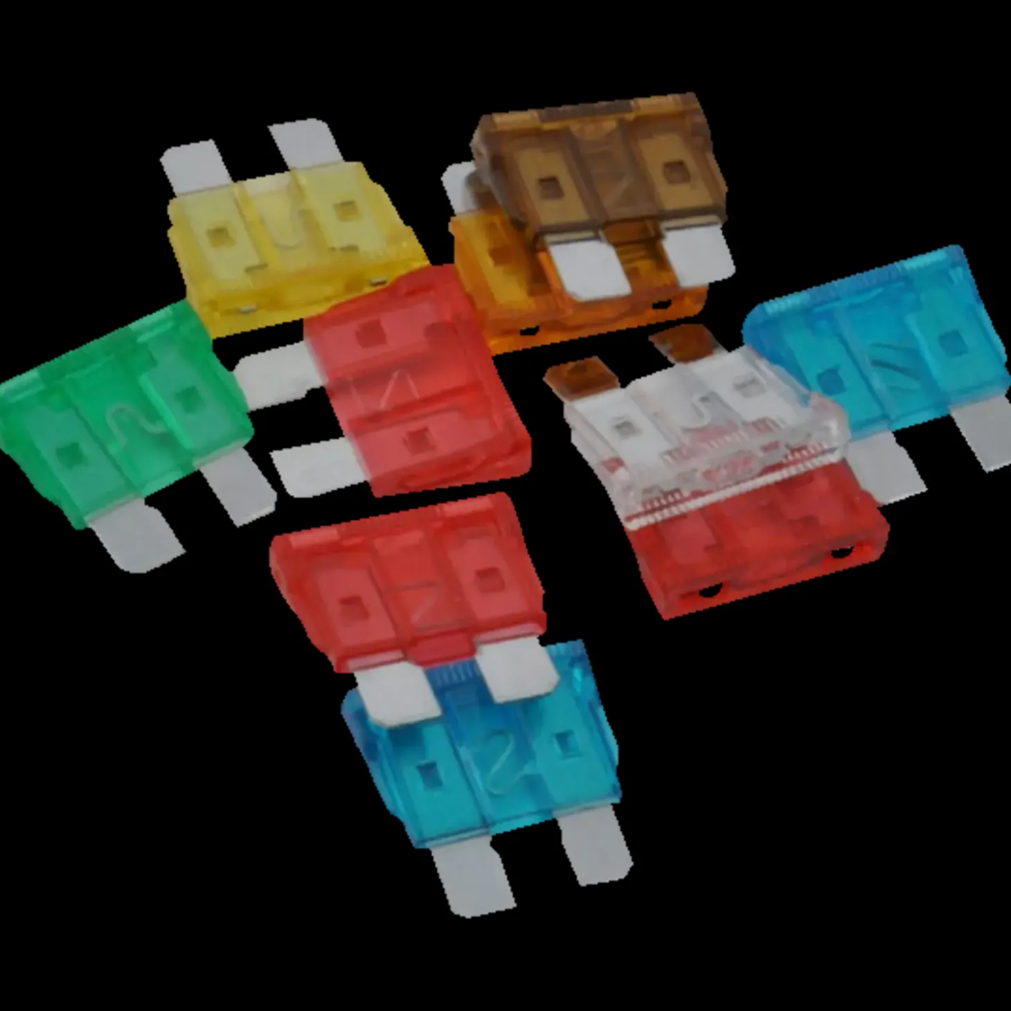 Sortiment med almindelige fladsikringer til biler.