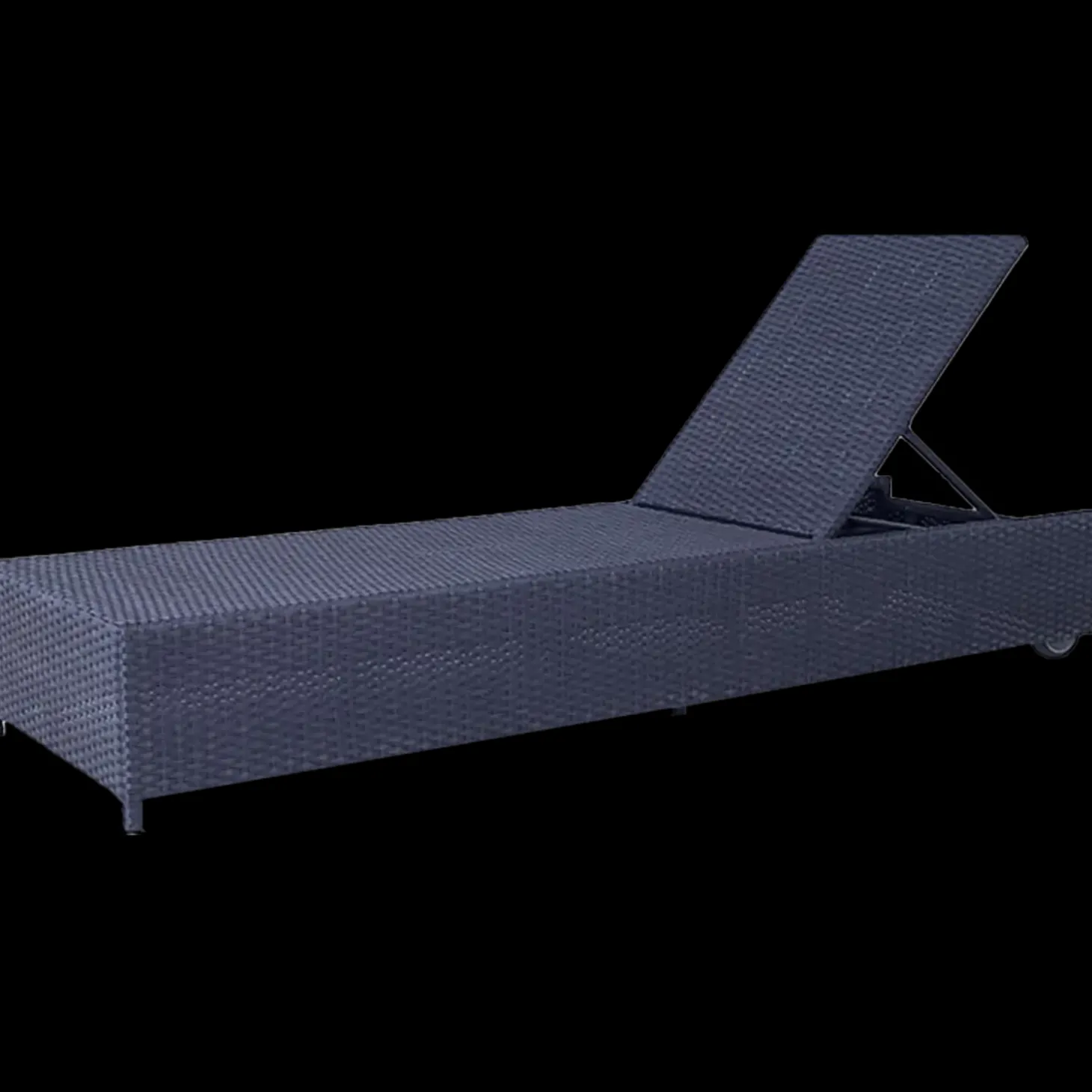 Solvogn/liggestol i sort PE-flet og med stålstel og hjul. Ryglænet kan justeres.