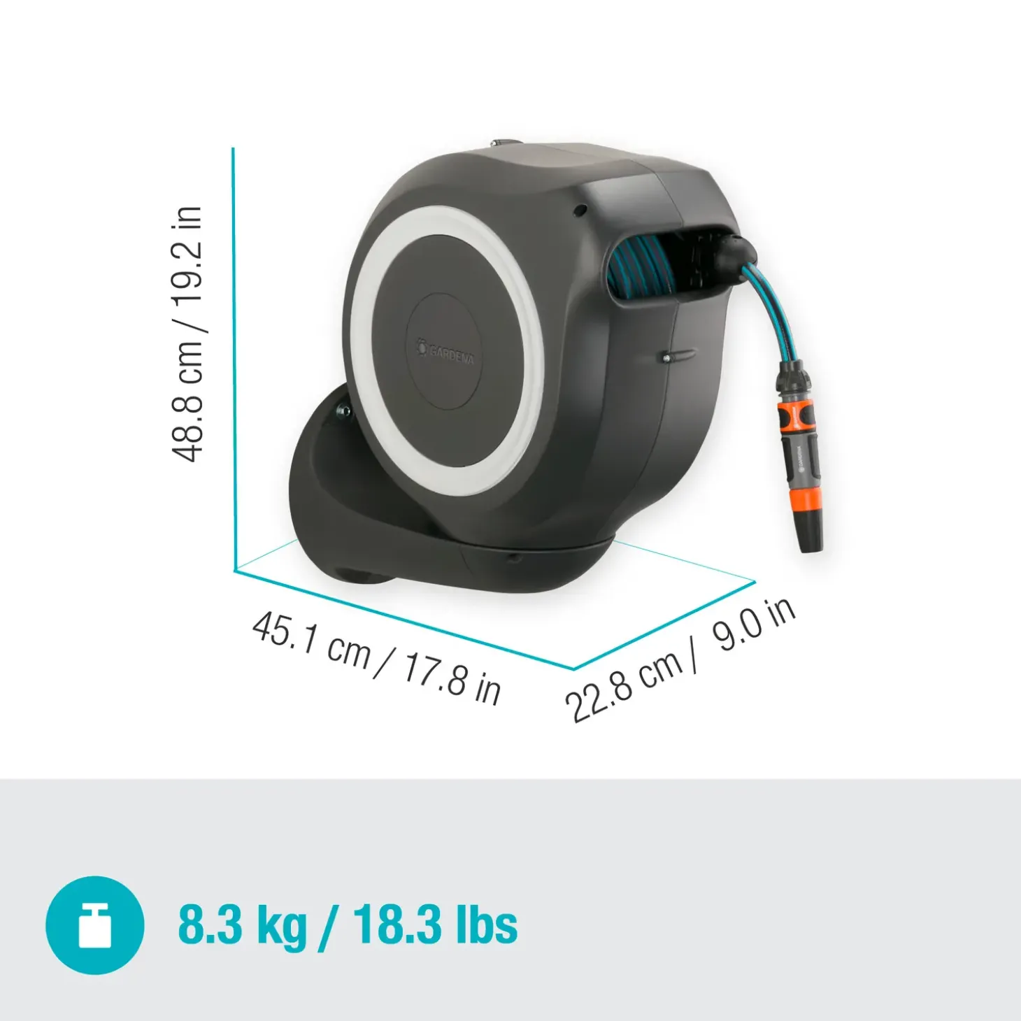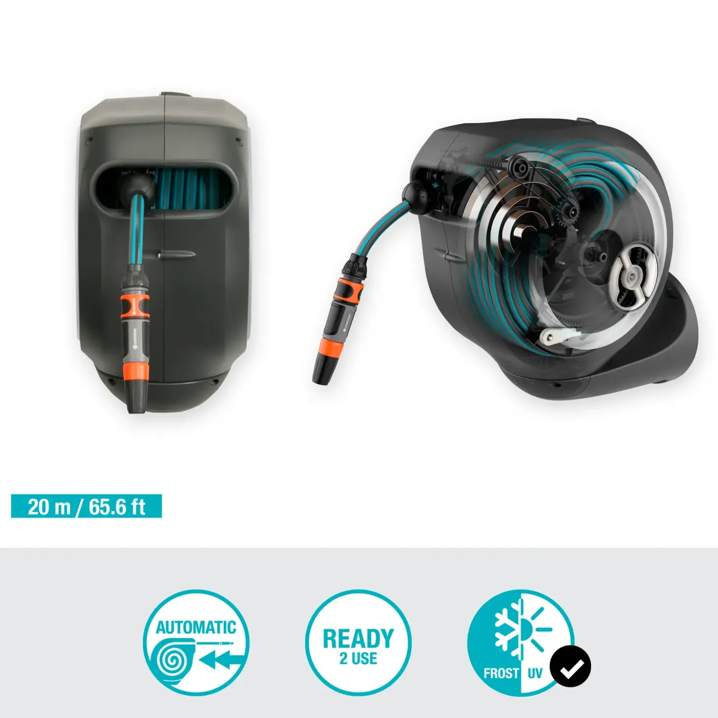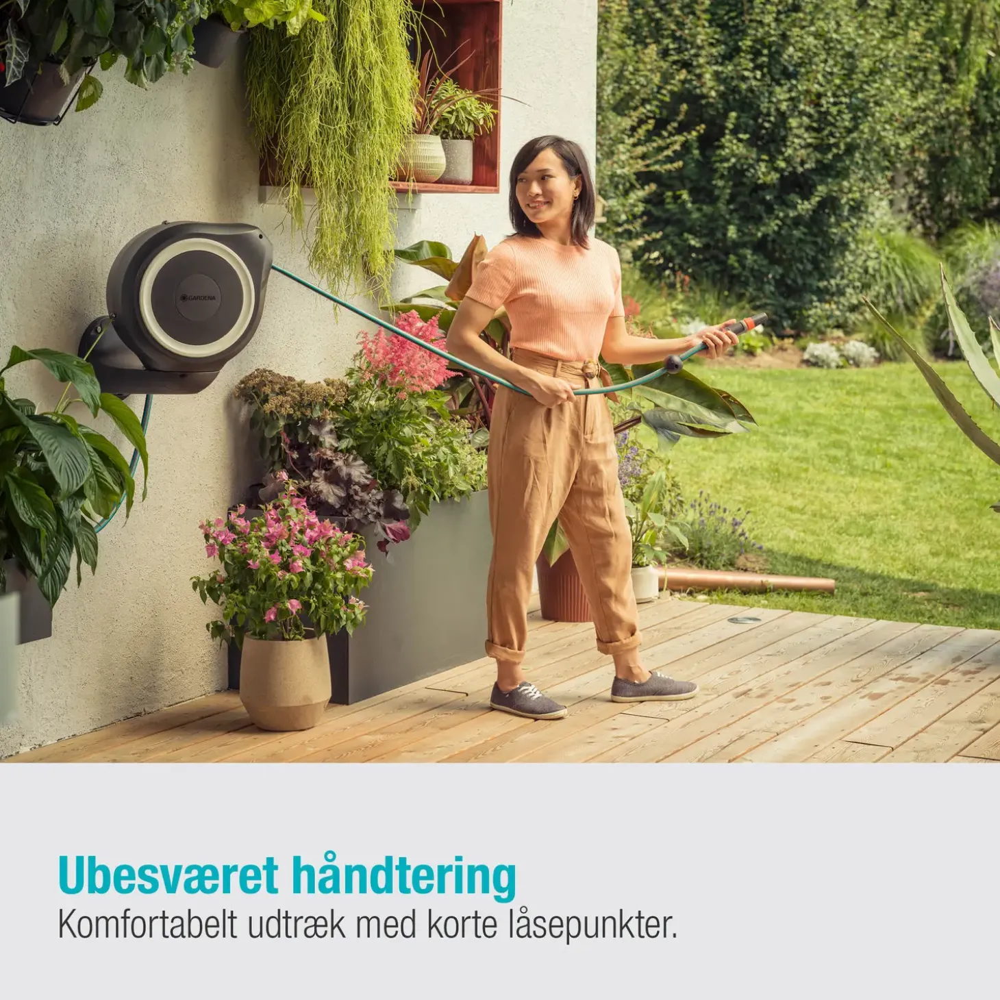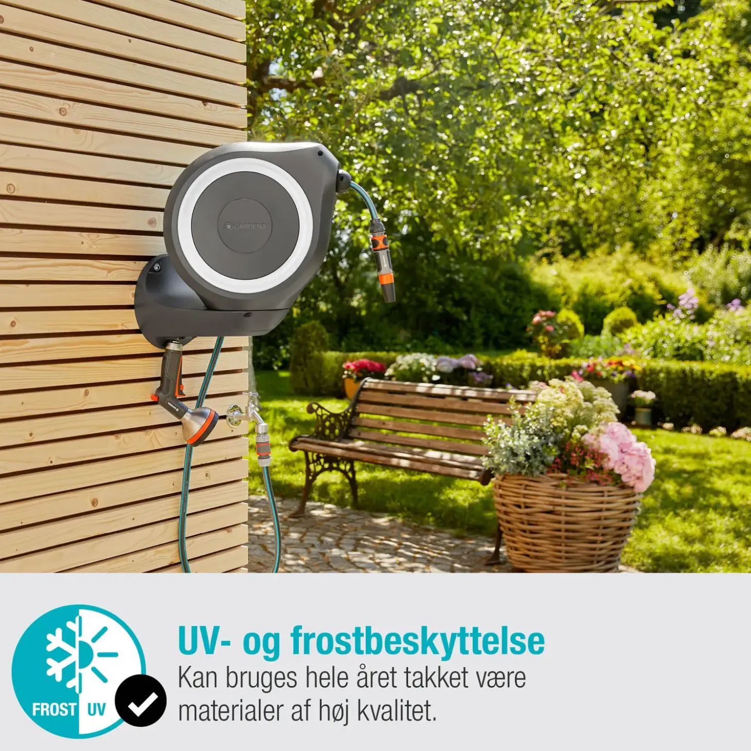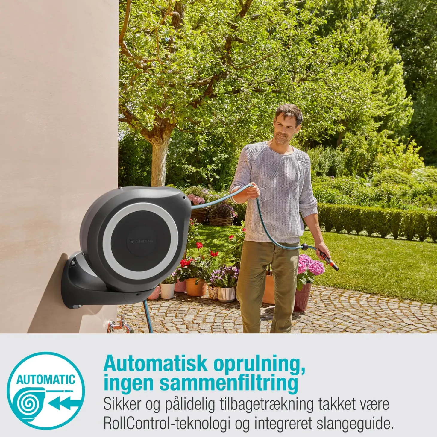 Smart vægslangeboks RollUp M fra Gardena med plads til 20 meter haveslange.
