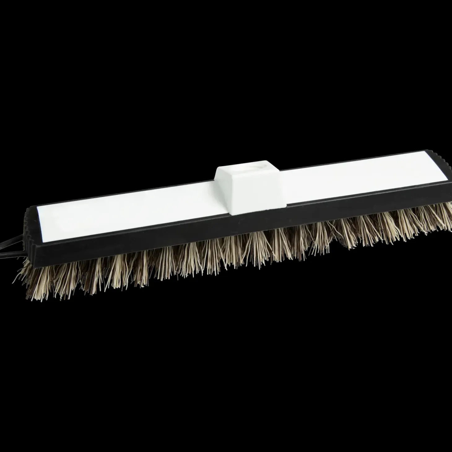Gulvskrubbe med blandede strå og en plastoverdel med gummi-belægning til skaft med gevind.