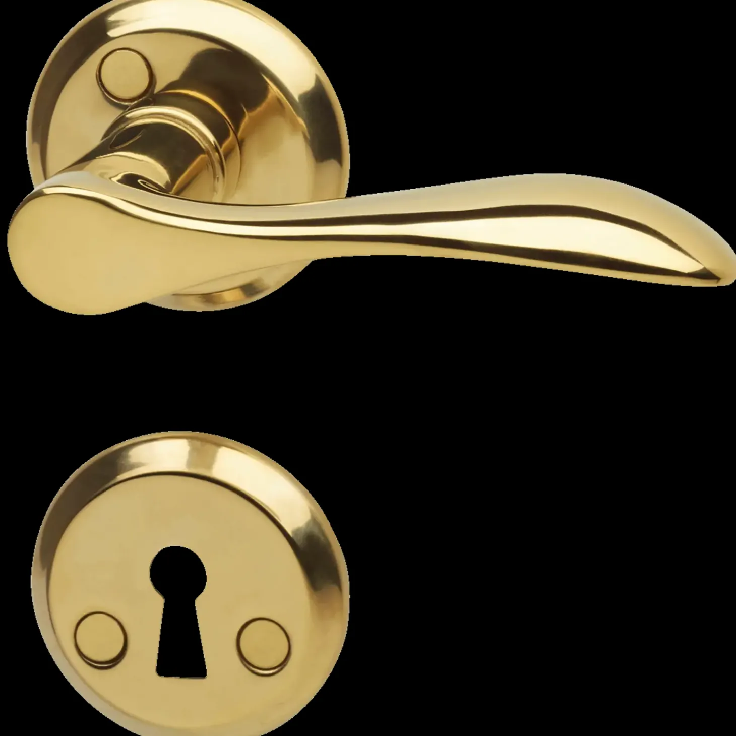 Dørgreb og nøgleskilt med PVD-overfladebehandlingen giver en slidstærk højglanspoleret messing udseende. Elegant traditionel dørgreb med et godt greb. Til indvendige døre 38-42 mm.