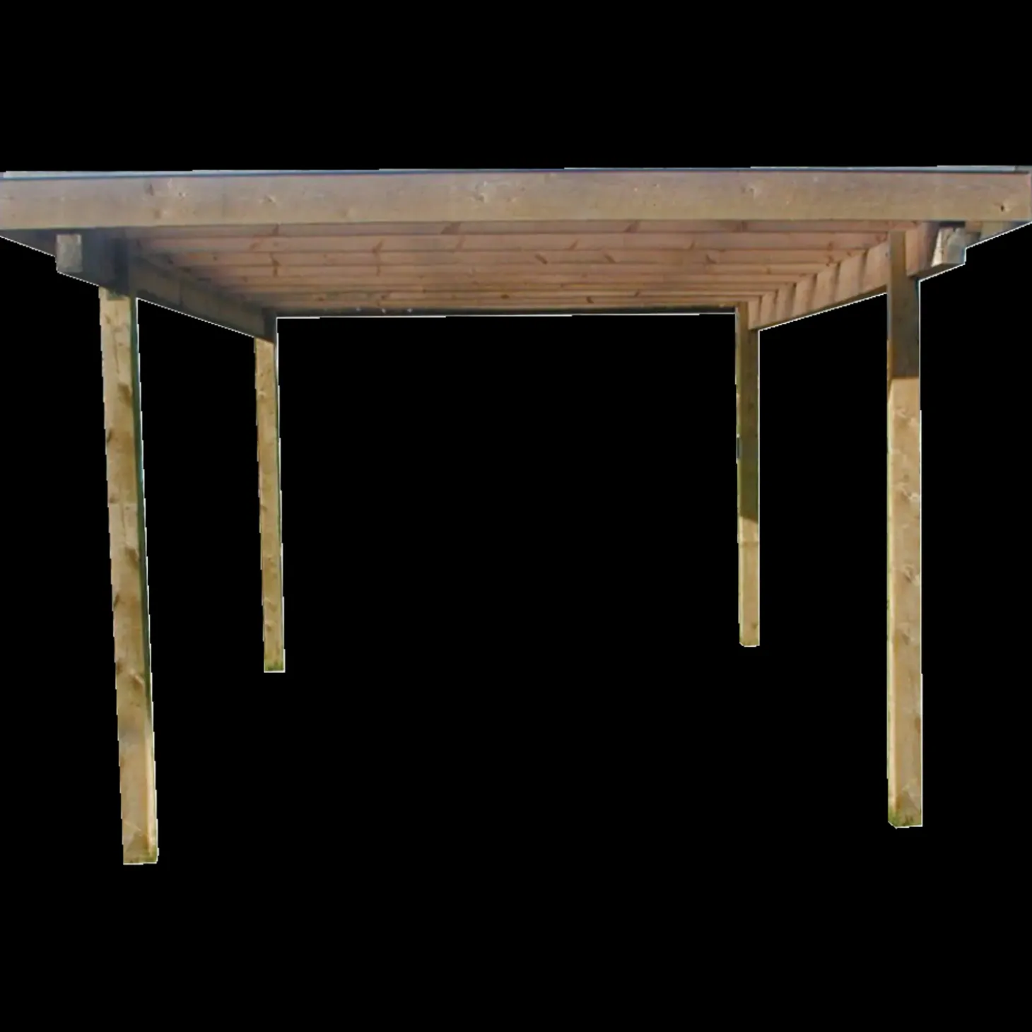 Carporten er udført i kraftige materialer, med pvc plasttrapeztag.