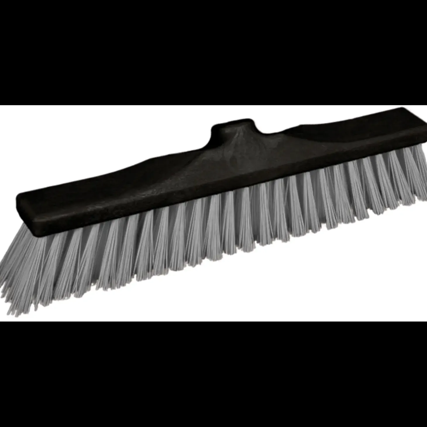 Havekost med røde nylon halvstiv børstertilsupergevind der måler 25×4 cm.