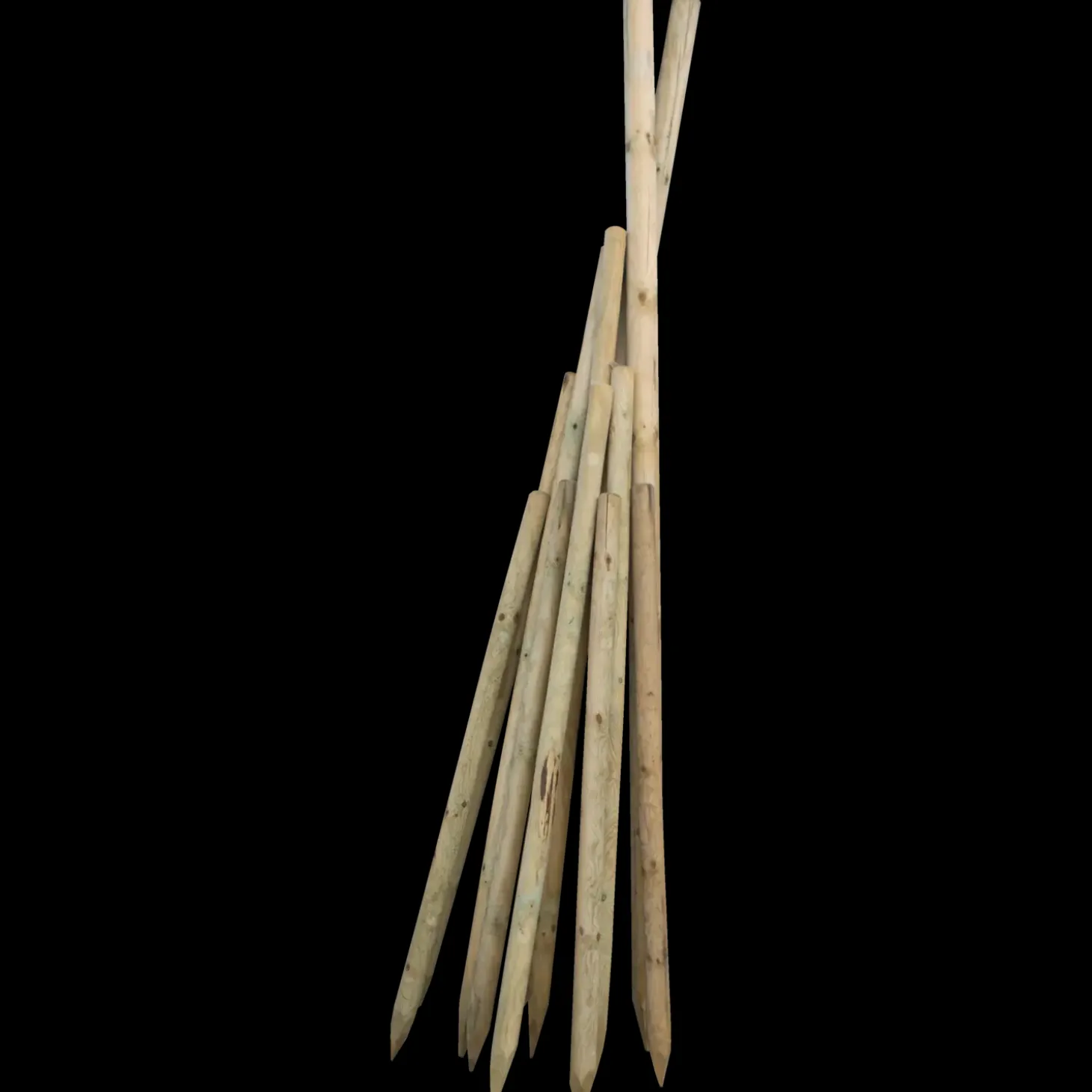 Trykimprægneret hegns-/opbindingspæl med spidset i den ene ende.