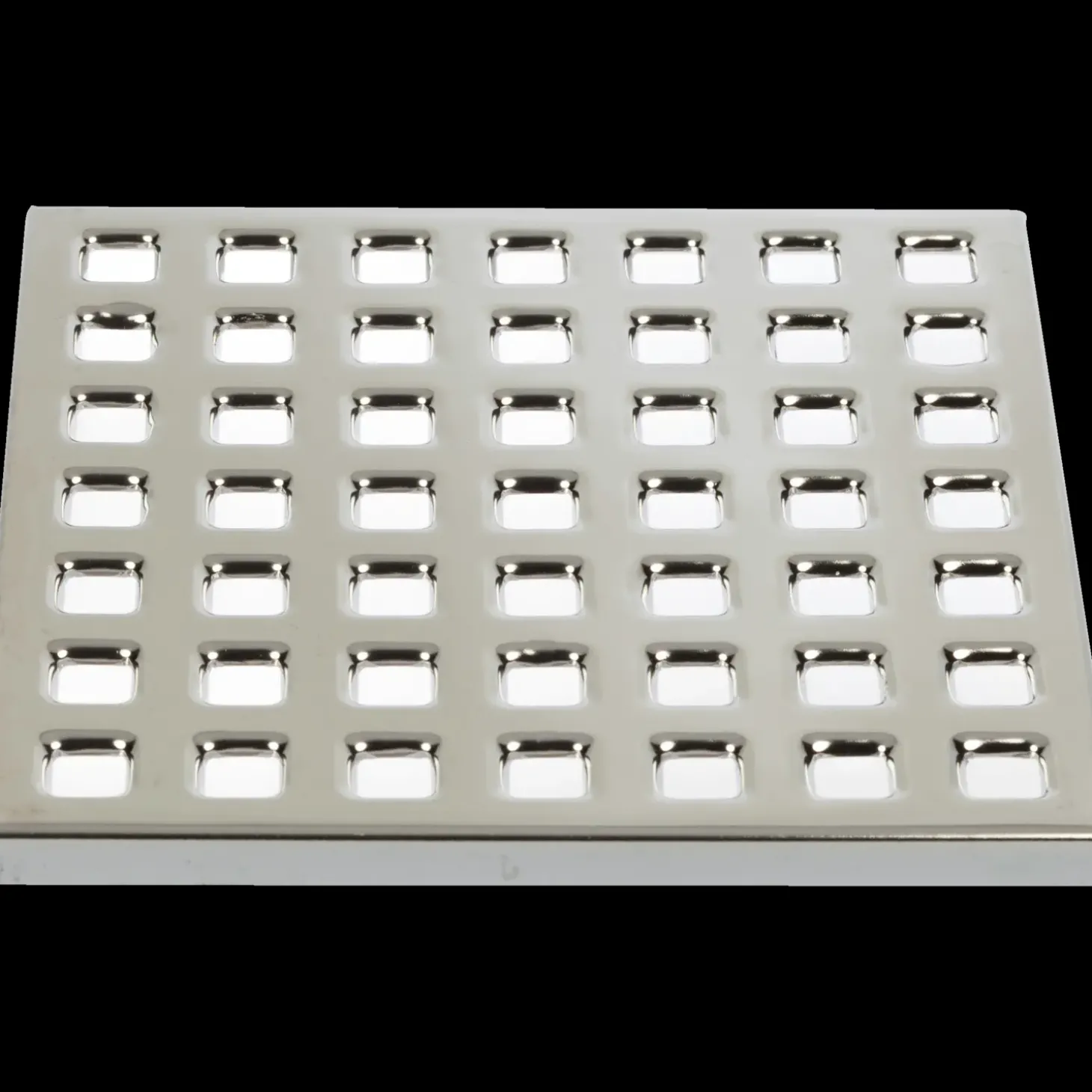 Rist til gulvafløb, rustfrit stål, udvendig mål 136×136 mm. Anvendes til klinke/beton gulve. VVS nr. 153842.136