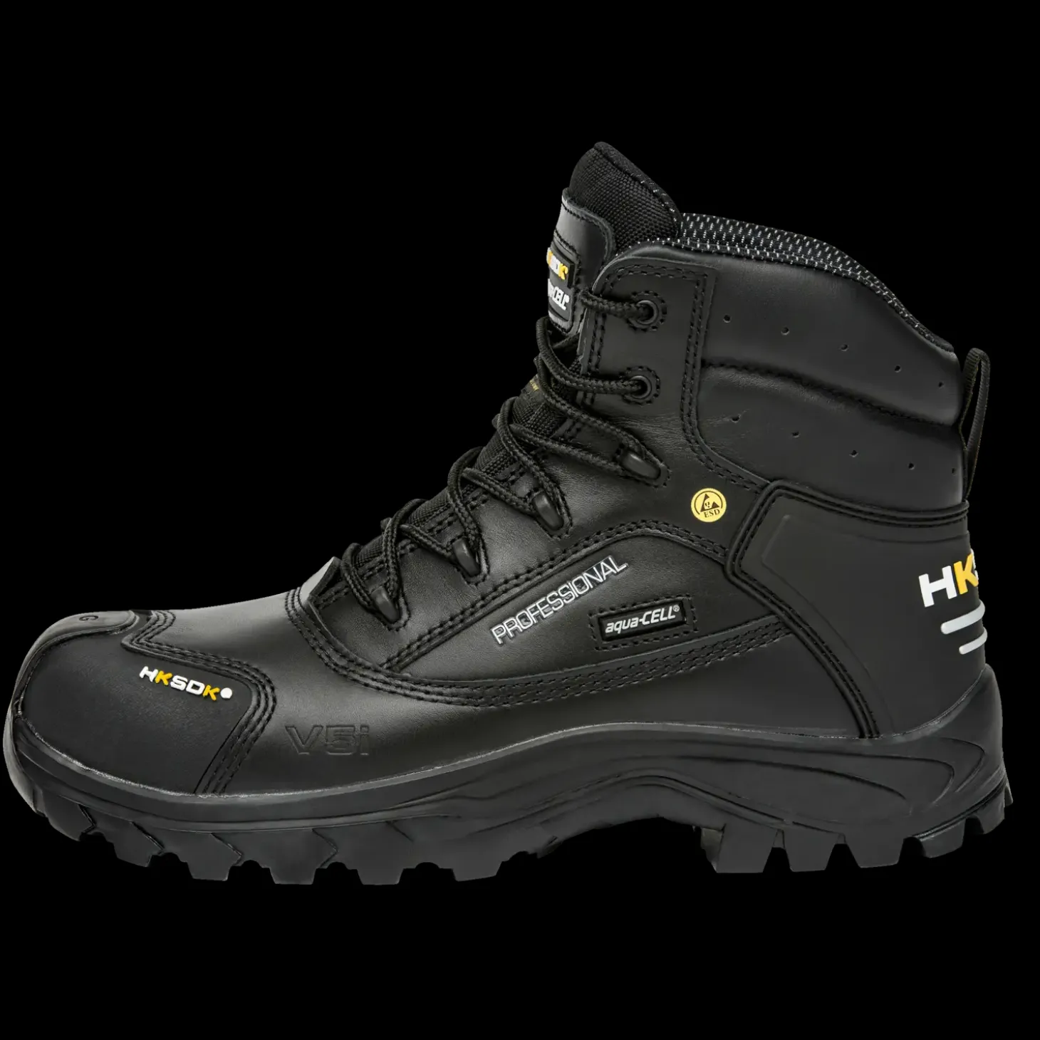 HKSDK sikkerhedsstøvle model V5i er en opdateret udgave af HKSDK-klassikeren V5, og den er uundværlig i det nordiske vintervejr. V5i er en robust vinterstøvle, som kendetegnes ved at være METALFRI , hvilket betyder, at der ikke dannes den såkaldte kuldebro. Udstyret med AquaCell®-membran, hvilket resulterer i en støvle som er 100% åndbar og vandtæt, TPA plast-kappe og TECH-FIBER sømværn for fuld beskyttelse. Foret med ThinsulateTM Ultra og dermed frostsikret helt ned til minus 30 graders kulde. Sålerne på denne model er af gummi, som modstår det kolde vejr bedst, og er ekstra skridfast. Undgå at bruge tykke sokker i denne meget tekniske støvle, da tykke sokker eller bomuld holder på fugten fra dine fødder.