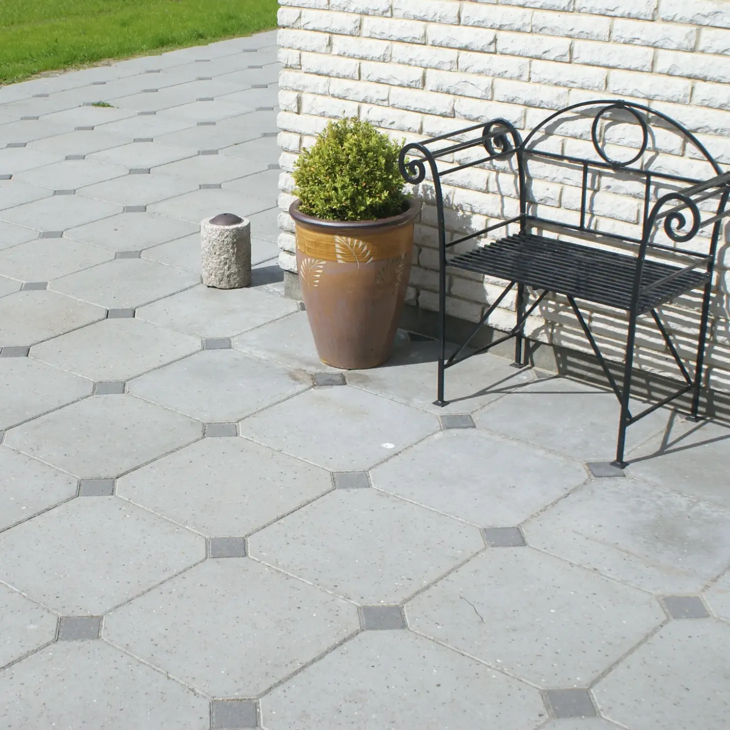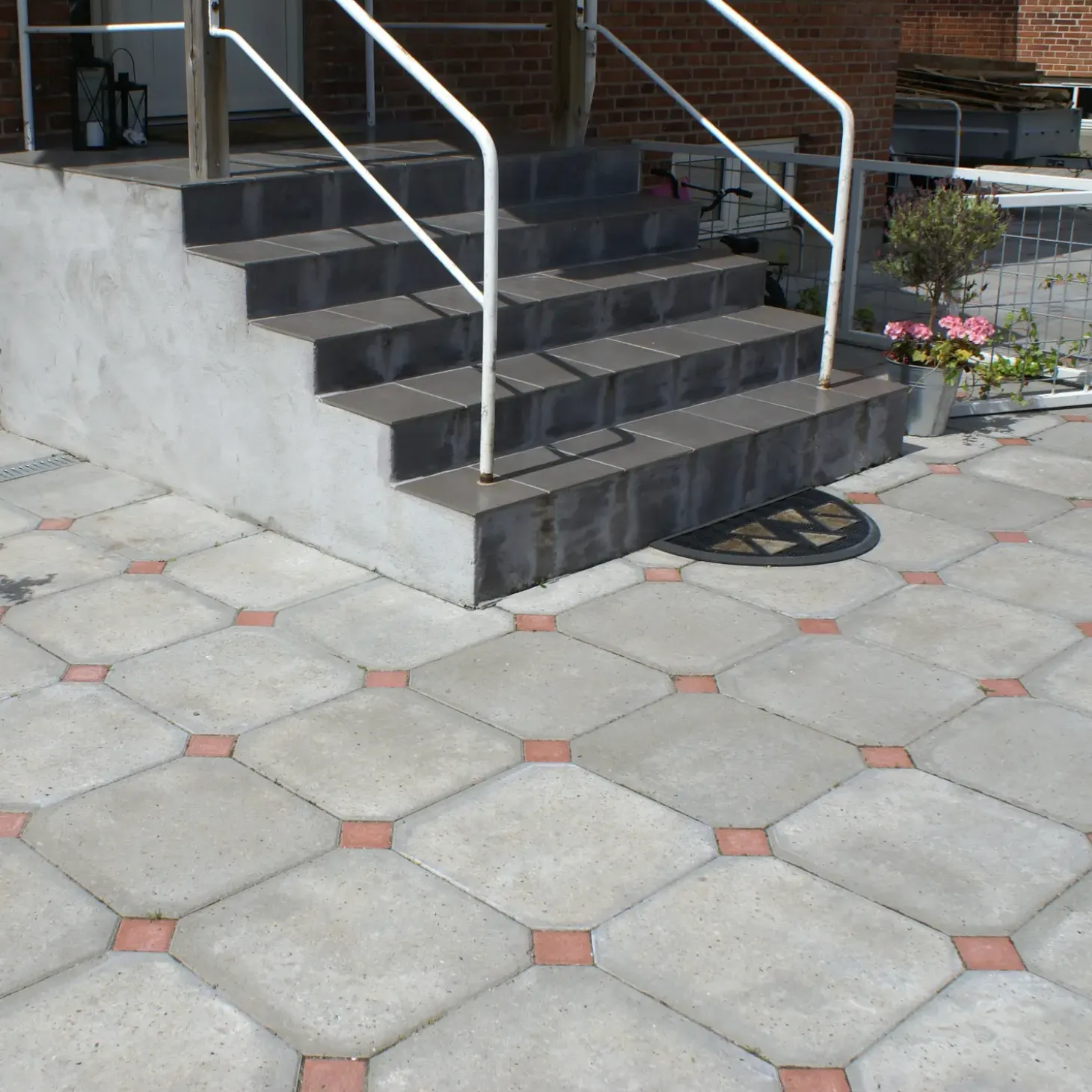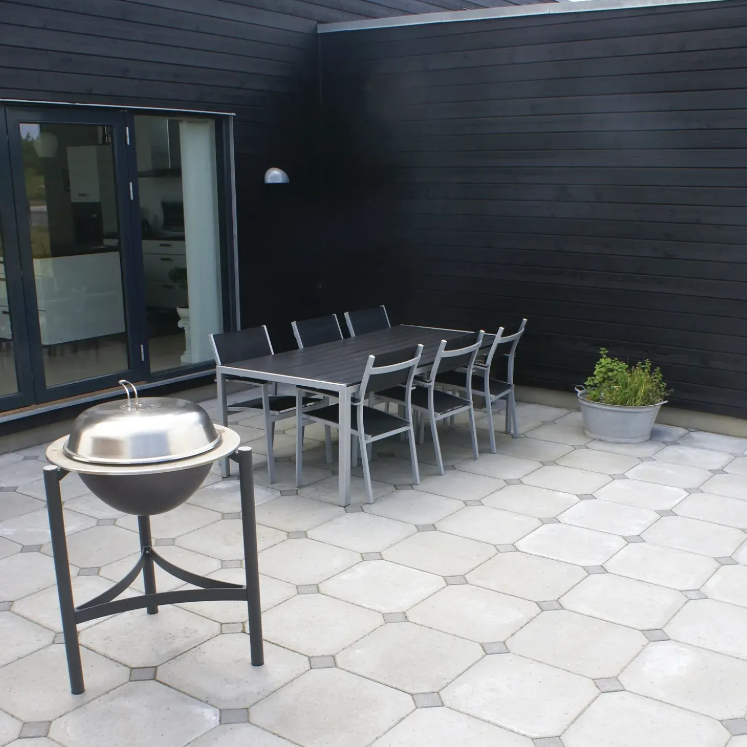 IBF SquareLine® med affasede kanter giver et enkelt og stilfuldt resultat, ved at kombinere flisen med kopsten (lille effektflise), som skal placeres i flisens 4 hjørner.