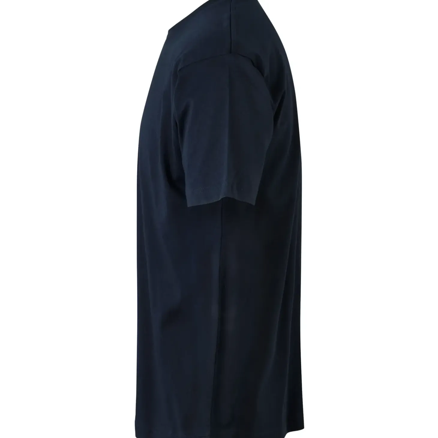 Klassisk T-shirt med rund hals, fire-lags halsrib og nakke- og skulderbånd. Holder faconen vask efter vask.