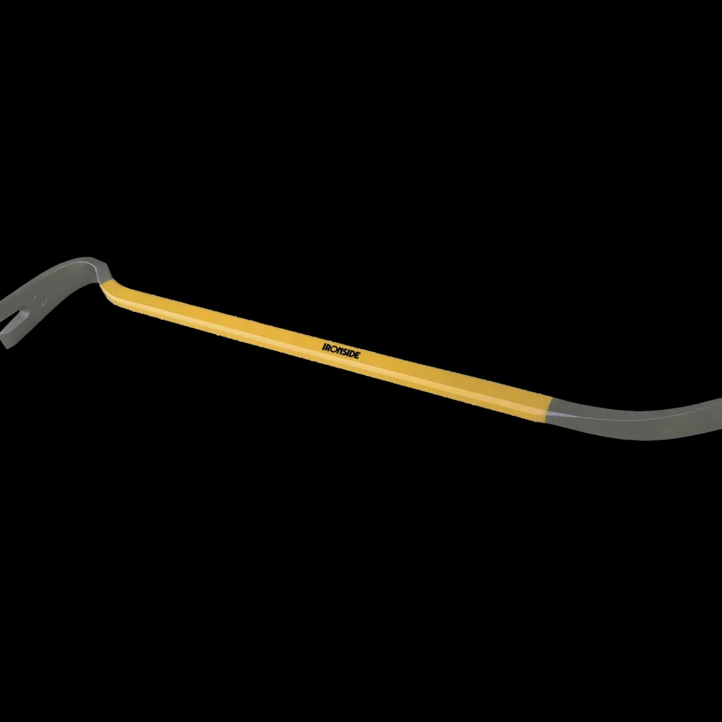 Koben i ottekantet hærdet CRV-stål. HRC 42-48. Ekstra tynde ender. Den ene ende med kløft og den anden med mejsel. Gult lakeret skaft.