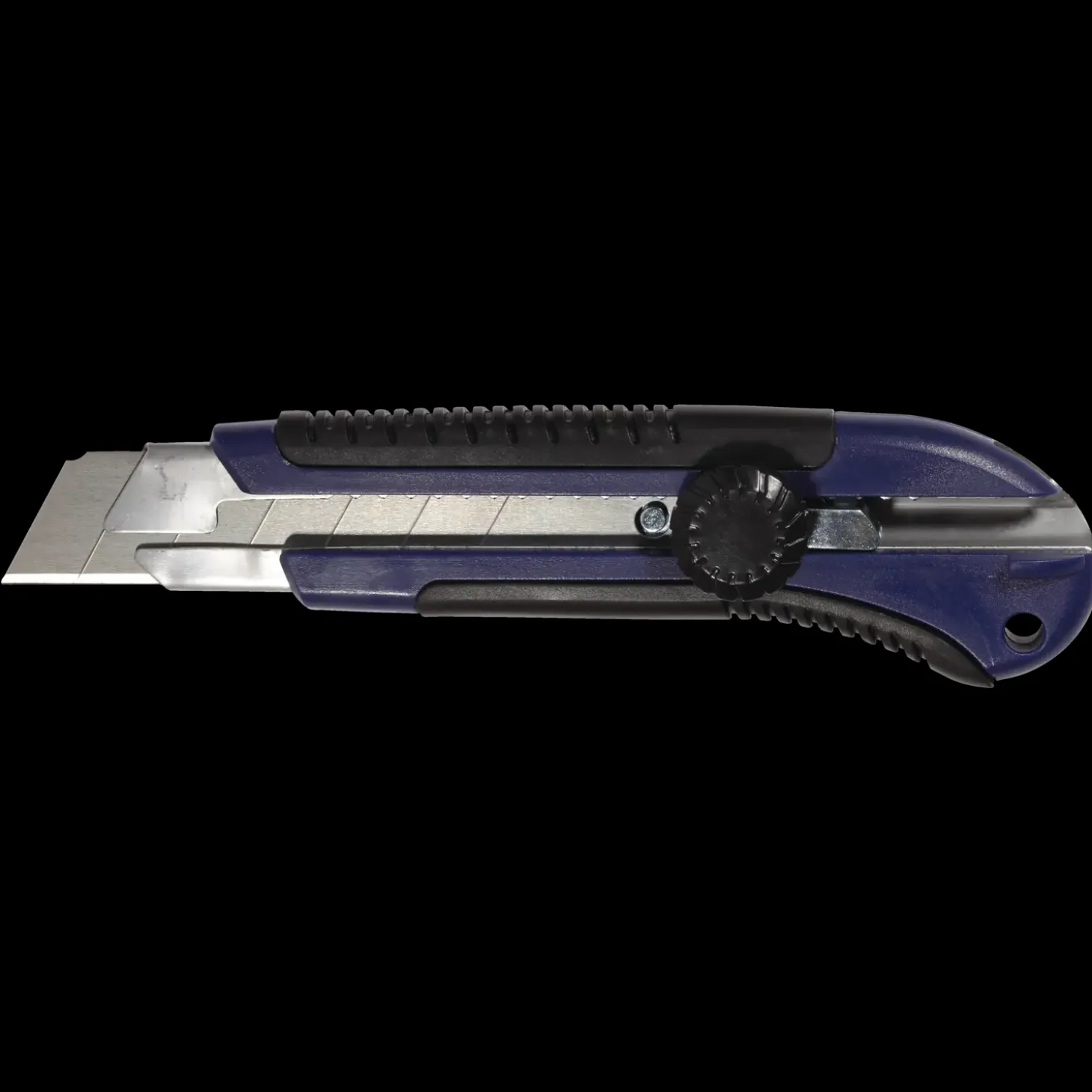 Klassisk stærk hobbykniv af “Knæ-af” typen med låseskrue, hvor man knækker stykker af bladet efterhånden som de slides ned.
