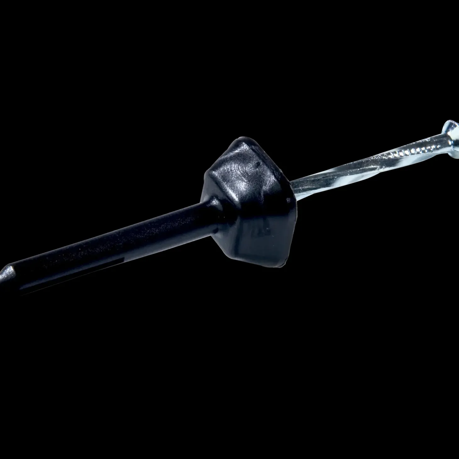 Slagplugs af sort HDPE med samme form som Xtra-knop på Platon grundmursplader