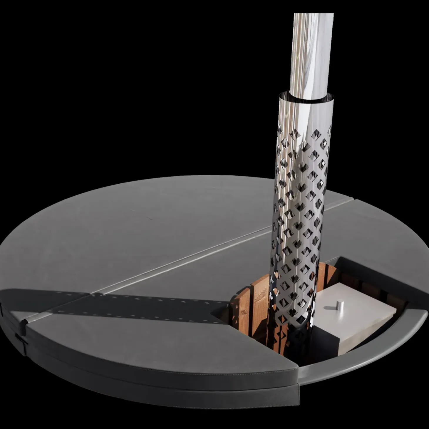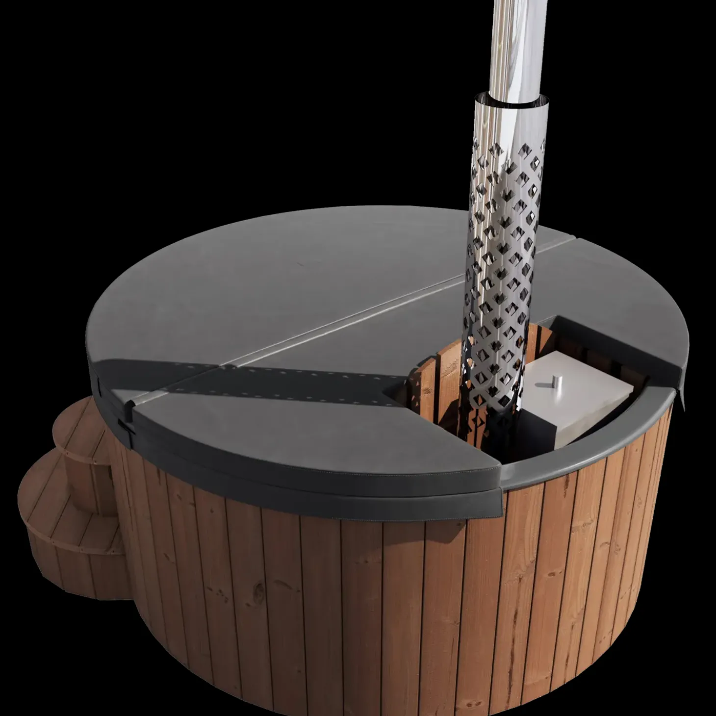 Coveret passer til vildmarksbad der måler Ø200 cm og er designet med brugervenlige detaljer, såsom fald fra midten og ud til kanten for at vand samt sne kan løber af. Udover de brugervenlige detaljer er coveret også æstetisk og fremstillet i imiteret læder, og polyethylen skumplader hvilket giver et gennemført og eksklusivt udtryk.