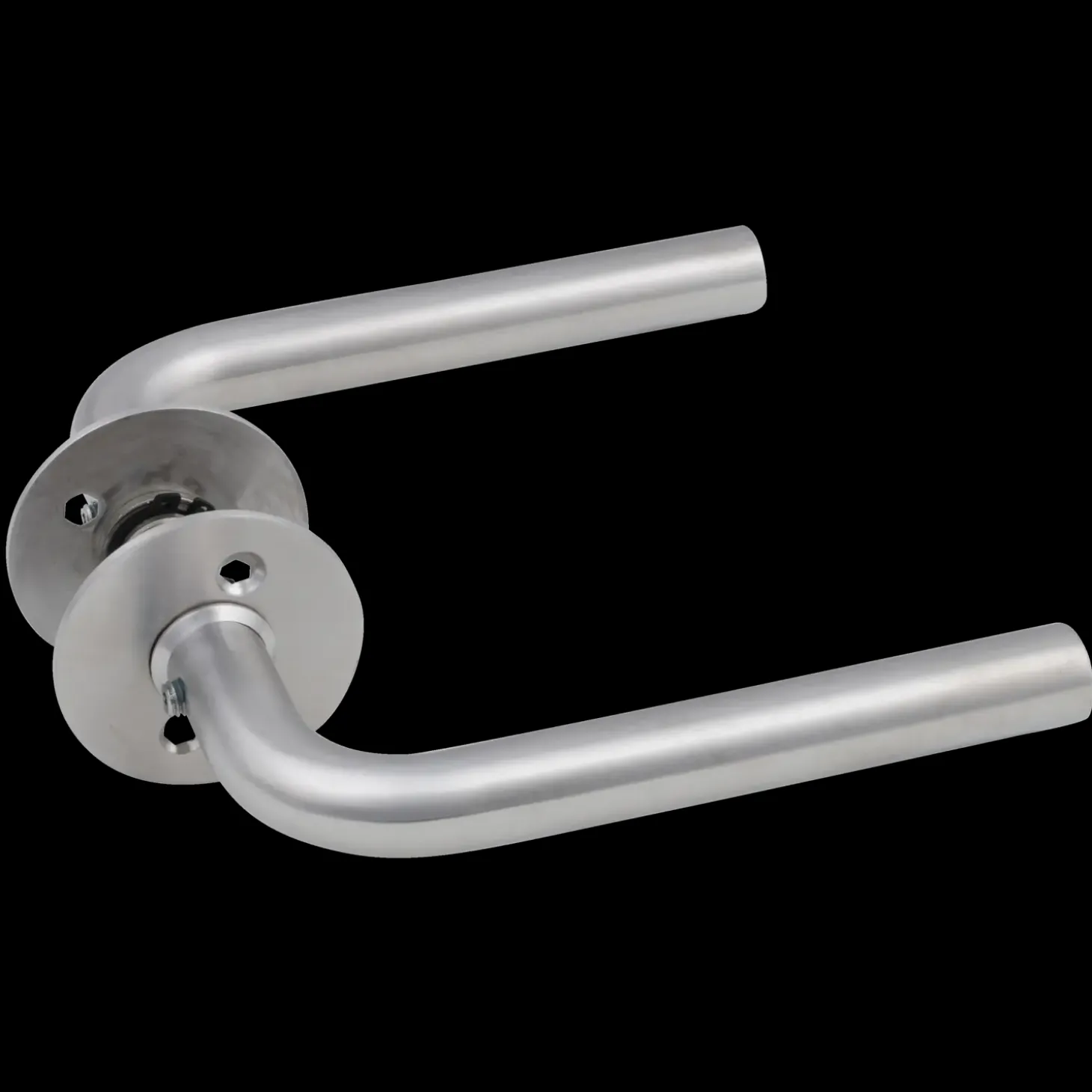 Neptun dørgreb i børstet rustfrit stål. Dørgrebet er med fastmonteret 2 mm massiv roset og L-formet greb. Dørgrebet passer til dørtykkelse 30-75 mm og er særlig velegnet ved kystnære områder.