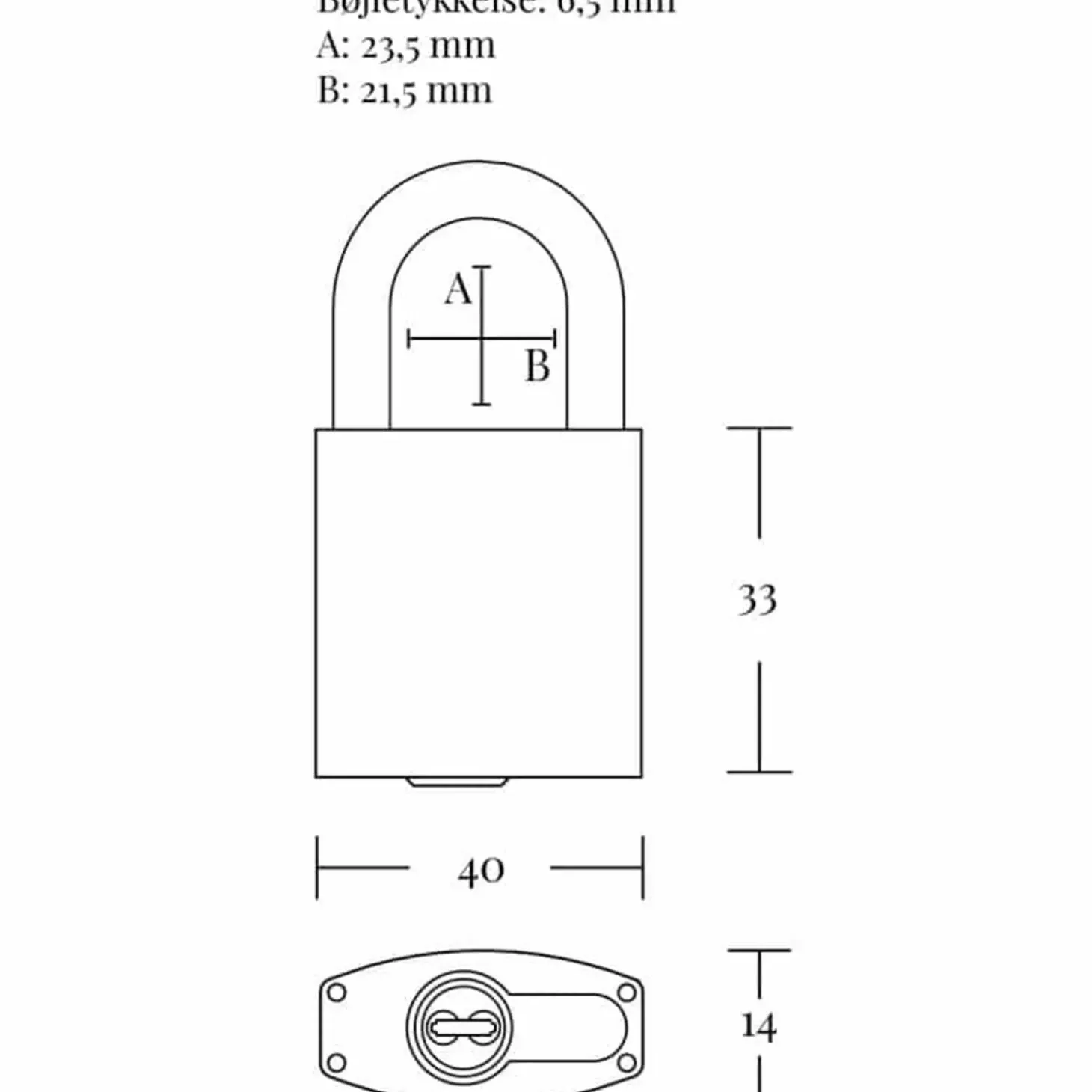 Jasafe hængelås 40 mm m/hærdet bøjle messing 2 stk