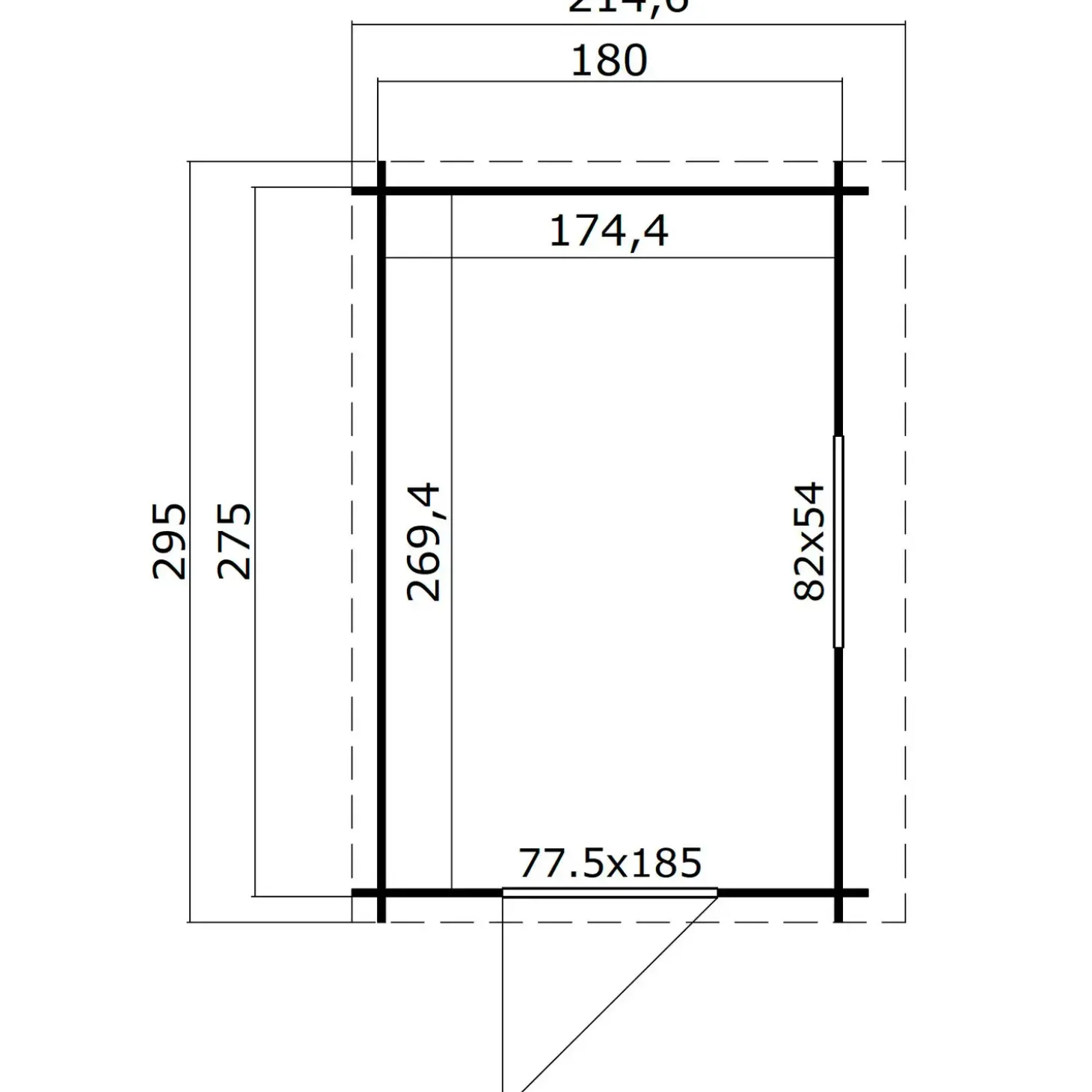 - Dør bredde og højde: 0,78 x 1,85 m