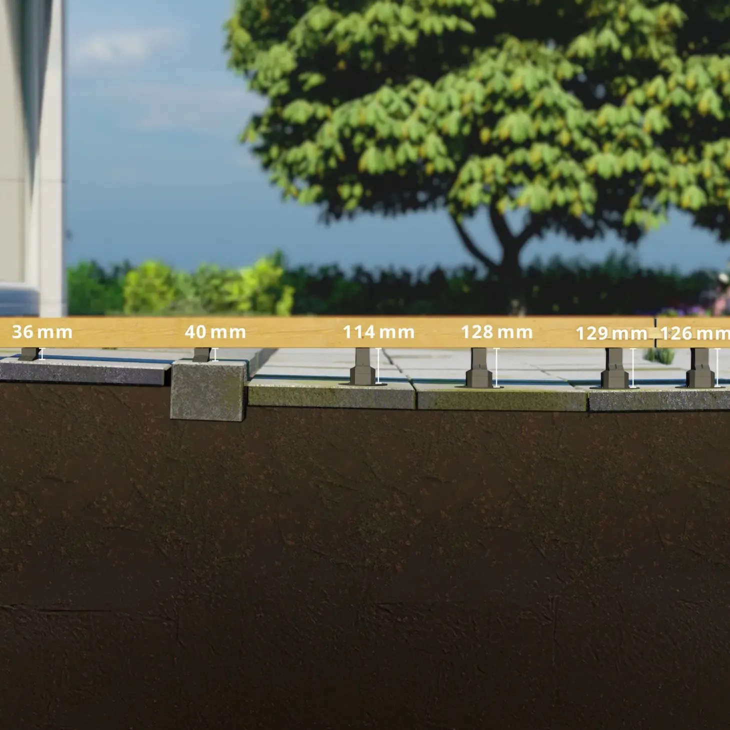 OBS: Der må maks. bruges 5 stk. Knudsen terrasseforhøjer pr. opklodsning, hvorved en opklodsningshøjde på 287 mm kan opnås.
