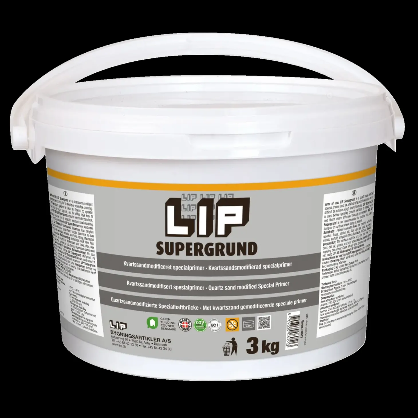 En kvartssandsmodificeret specialprimer til forskellige typer underlag, så som malede betongulve, gamle fliser, trægulve, gips mm. Kan ligeledes anvendes på vanskelige underlag så som epoxy, støbeasfalt og anhydritgulve. Supergrunderen benyttes i forbindelse med fliselægning/spartling af vægge og gulve, hvor der stilles ekstra store krav til vedhæftningen.