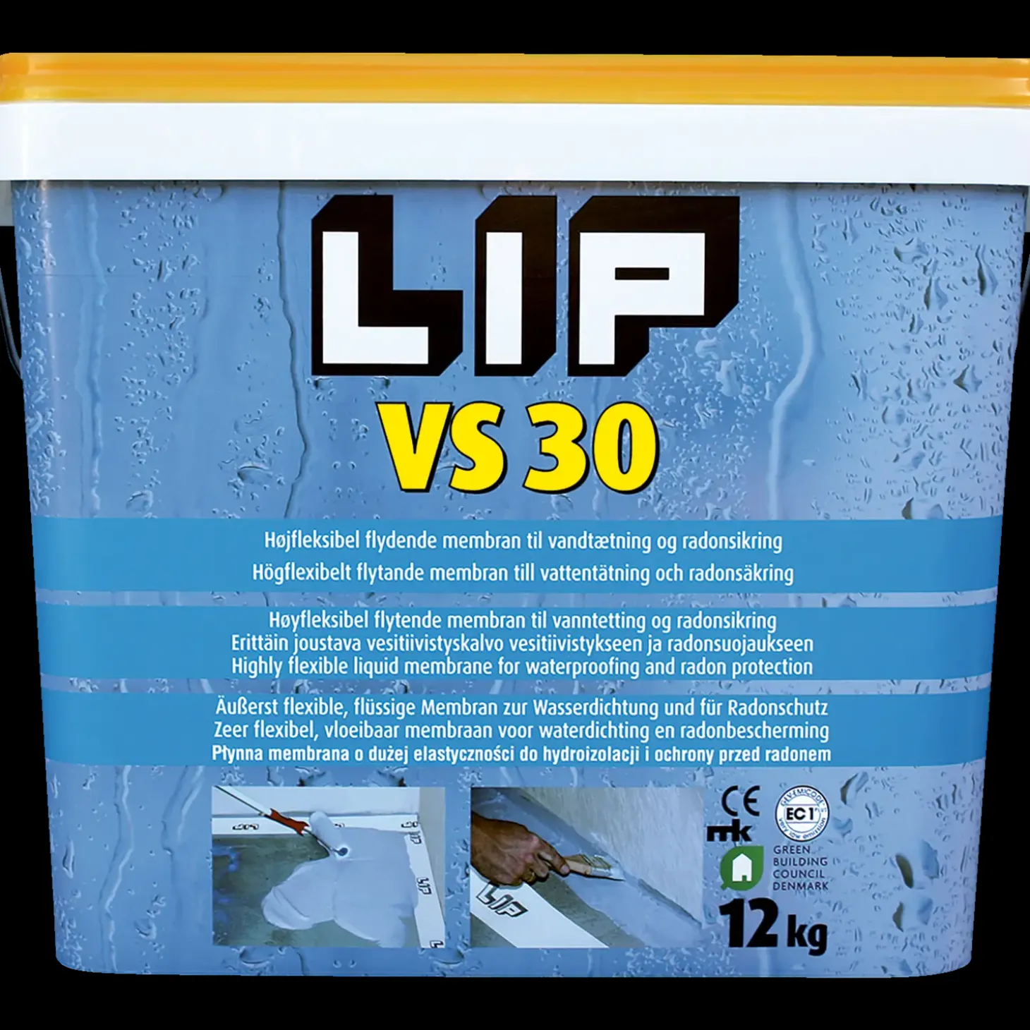 LIP VS 30 Vandtætningsmembran forhandles færdigoprørt og er en 1-komponent højfleksibel flydende membran. Den benyttes til vandtætning af gulv- og vægbeklædning i vådrum og badeværelse, inden du monterer af fliser. Det giver en vandafvisende effekt. Vandtætningsmembranen er fleksibel og let at arbejde med. Produktet er klar til brug med det samme, og arbejdet udføres med en malerrulle, spartel eller pensel.