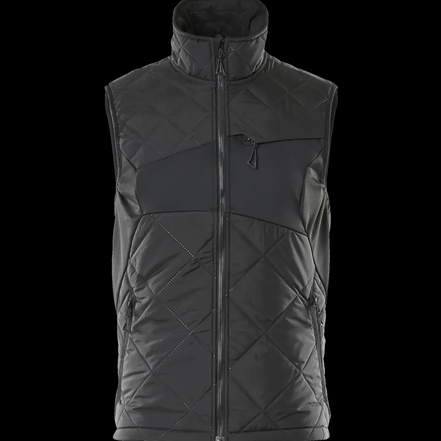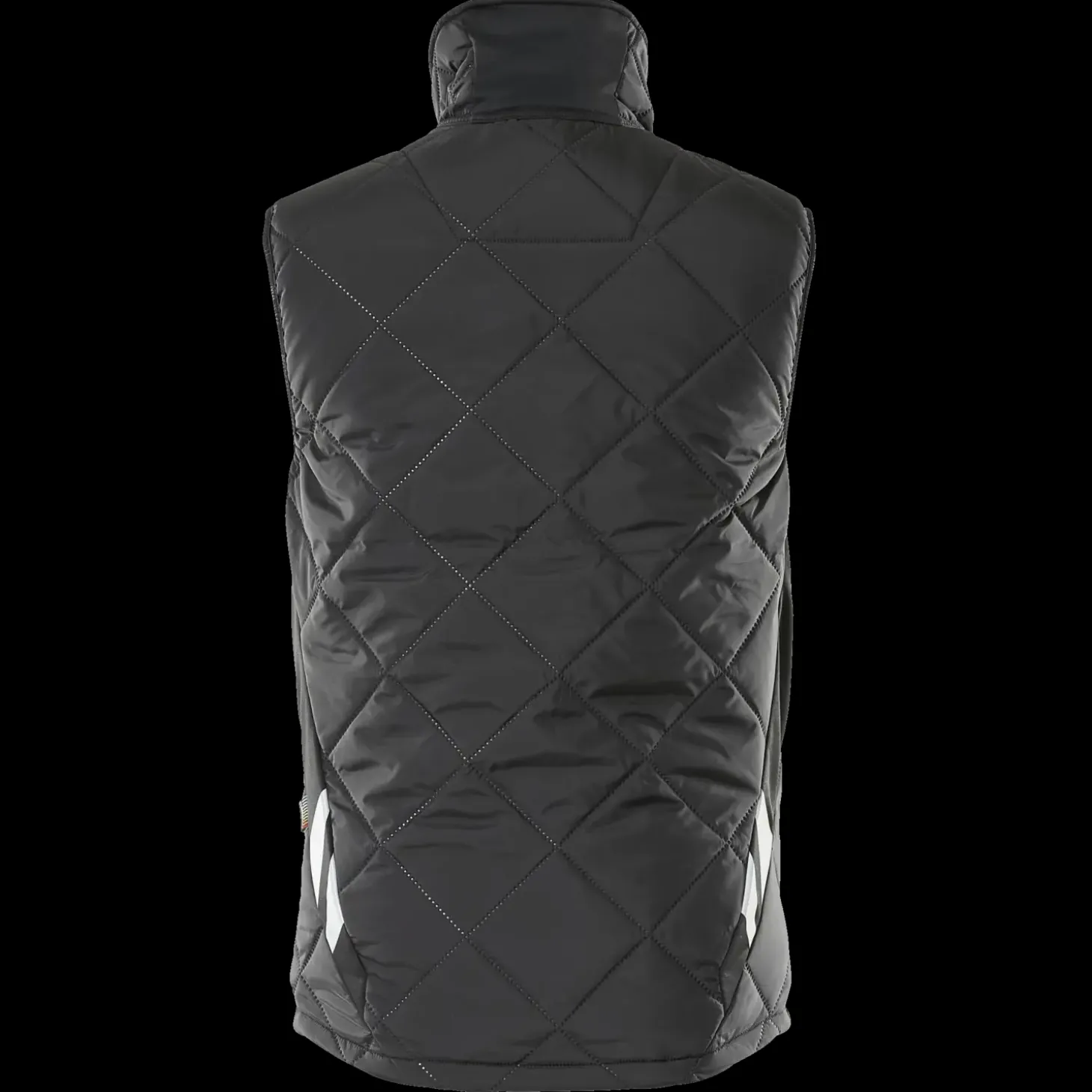 Mascot Accelerate vandafvisende vintervest med climascot, samt lukning med lynlås og indvendigt vindfang. Vesten er designet med forskellig lommer, strækstof i siderne og på brystet samt med reflekseffekter. Vintervesten er med unik CLIMASCOT®-isolering der sikrer effektivt varme, er let, blød og fylder næsten ingenting, når den presses sammen.
