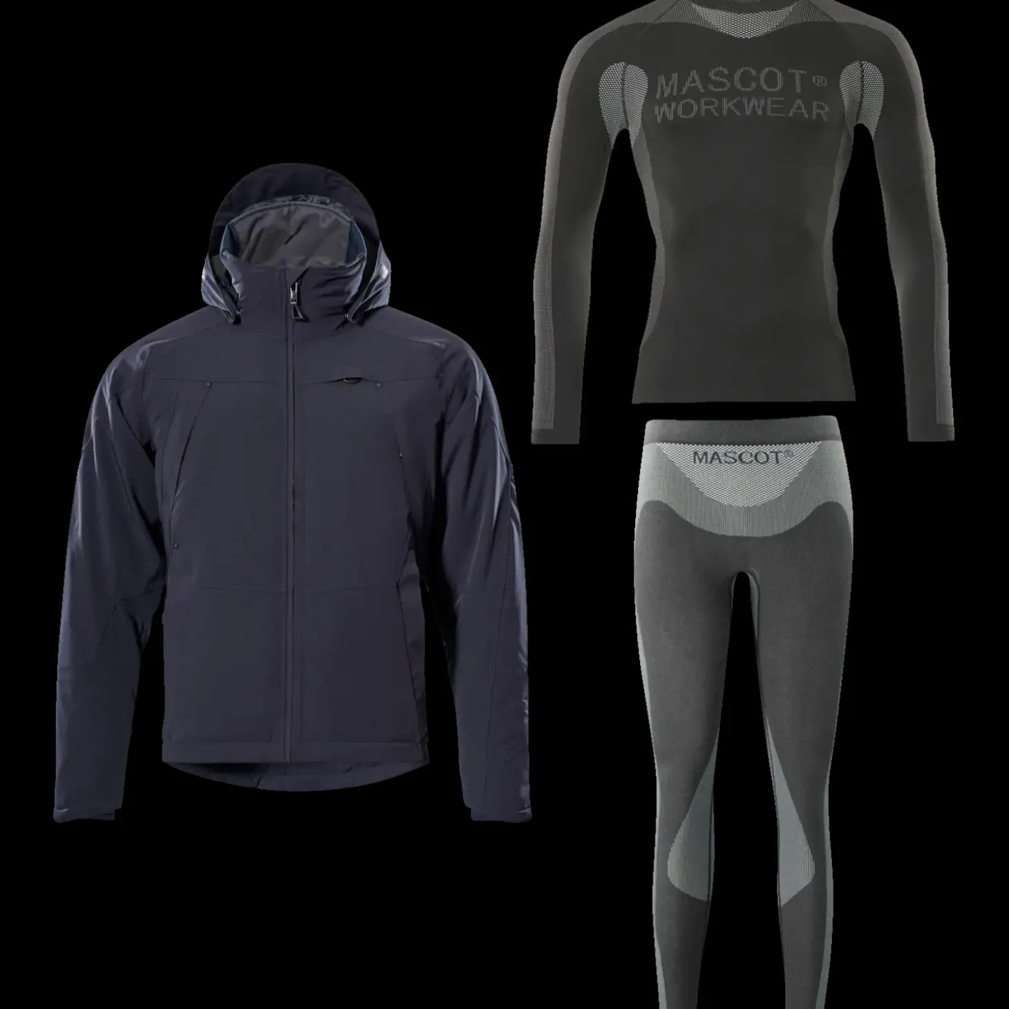 Indeholder 1 Advanced vinterjakke i sort, Crossover funktions-undertrøje og underbuks med effektive svedtransporterende egenskaber. Elastisk