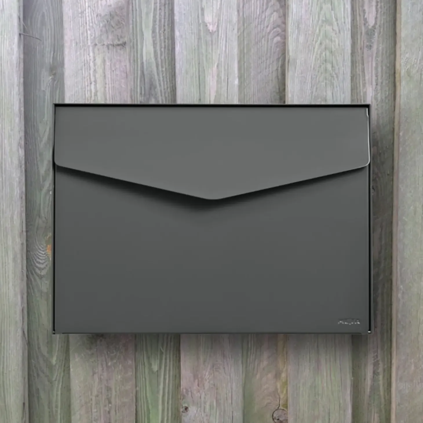 ME-FA Letter er en smuk og stilren design postkasse, som er inspireret af konvoluttens karakteristiske form. Med Letter får du et godt gennemtænkt design til en overkommelig pris. Med reference til den traditionelle konvolut dannes der en poetisk forbindelse til indholdet i postkassen. Låsen er diskret skjult bag klappen. .