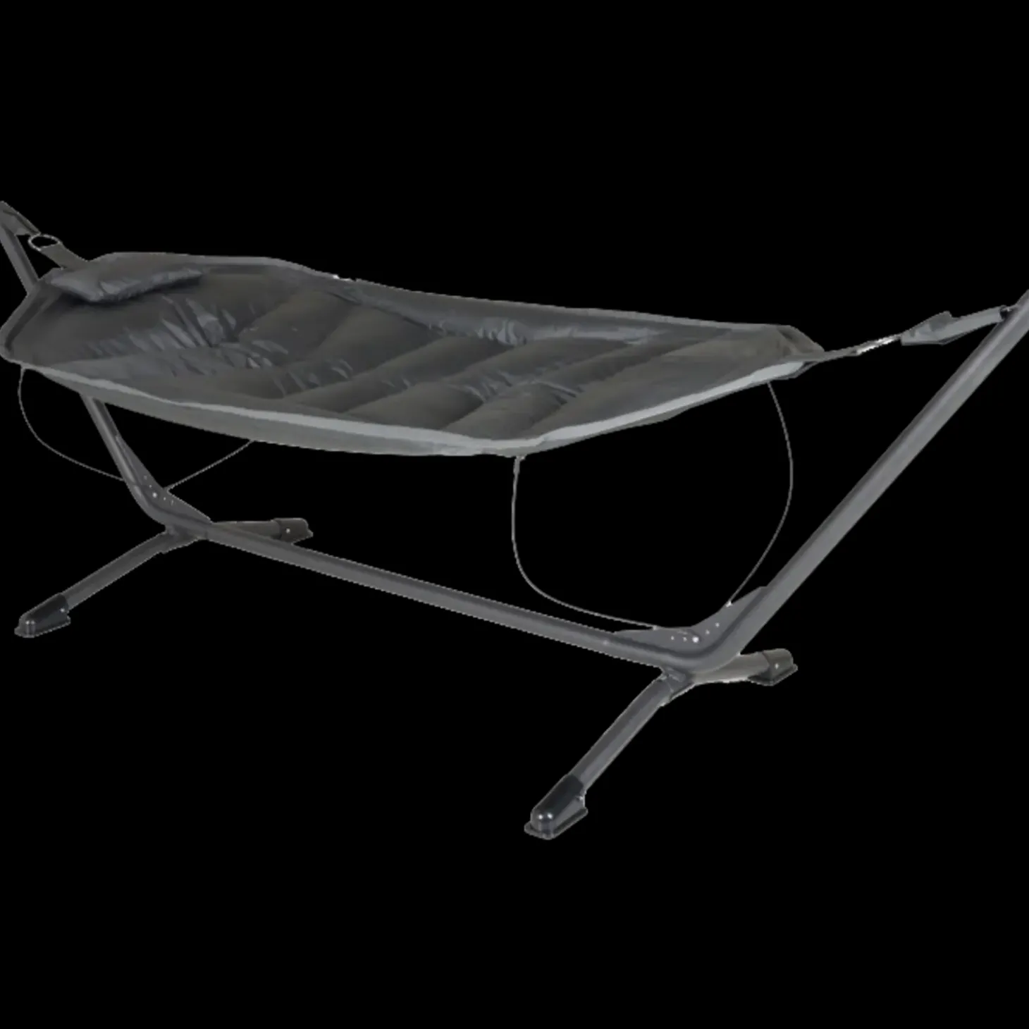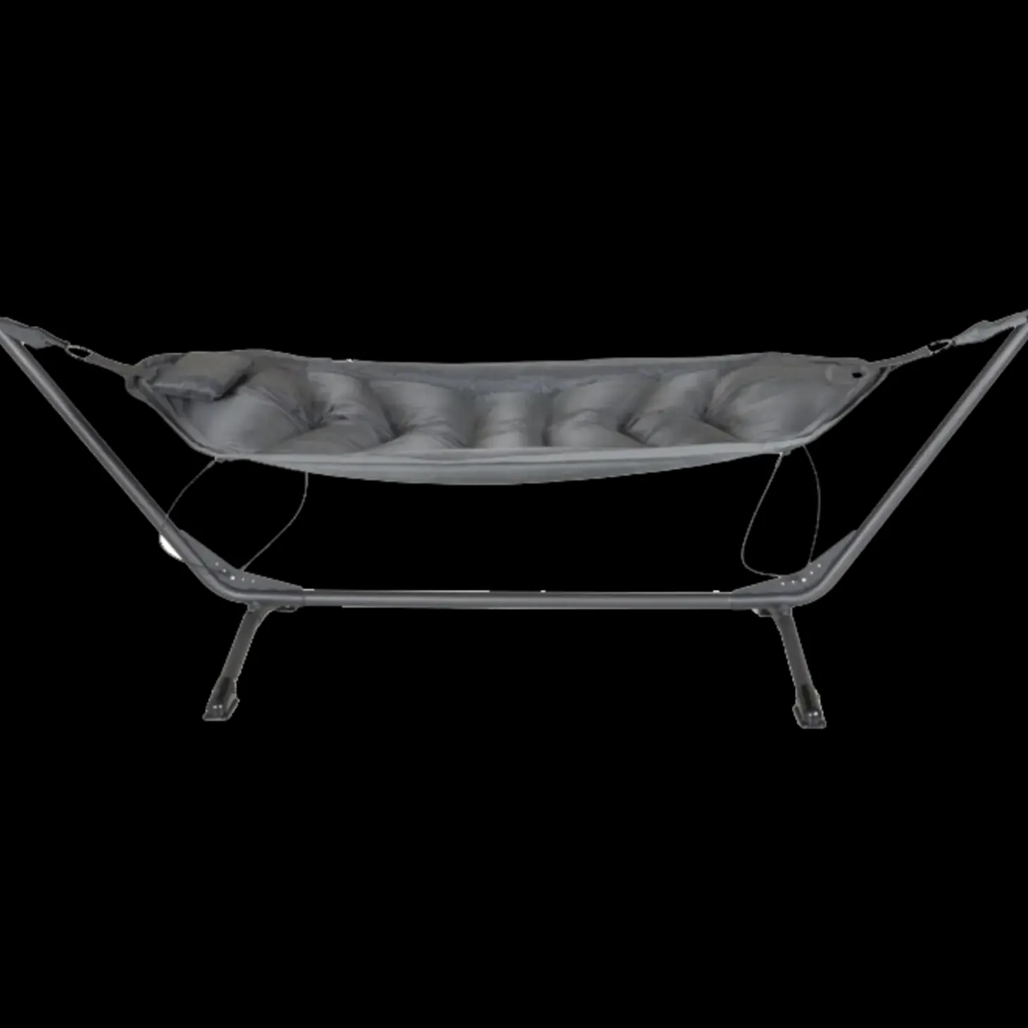 Hængekøje i grå 100% polyester. L:213 B:96 cmStander i sort stål.