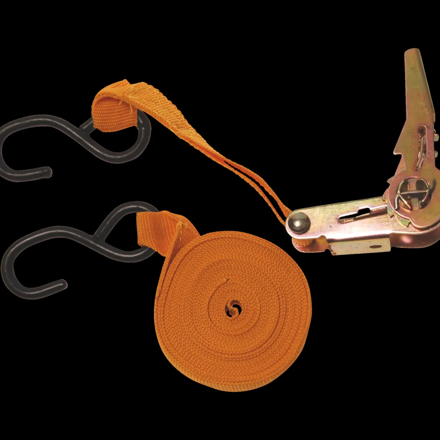 - Bagagefastspænder med skralde og 2 gummibelagte kroge