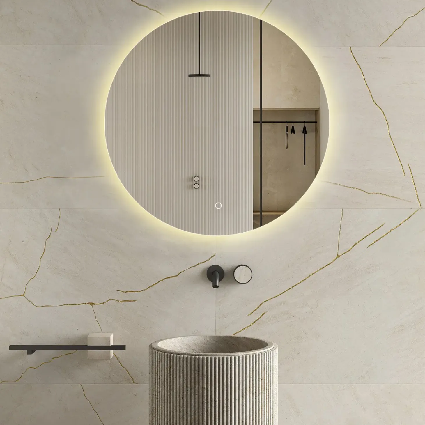 Super flot rundt spejl med LED Ø 80 cm med bagud vendt lys.