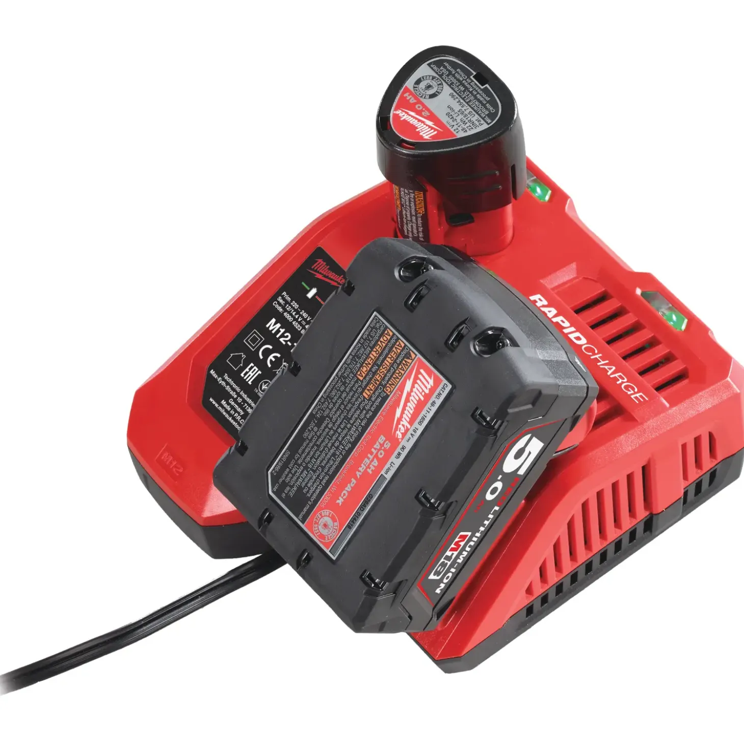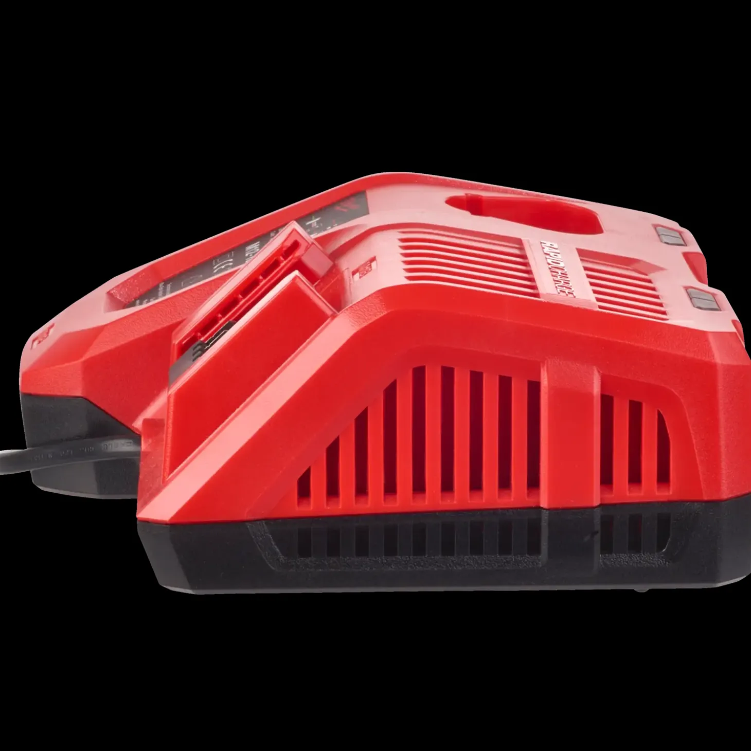 Med denne hurtigoplader kan du oplade alle M18™, M14™ og M12™ REDLITHIUM™ batterier. Kan indeholde 2 batterier, og disse oplades via sekvensladning.