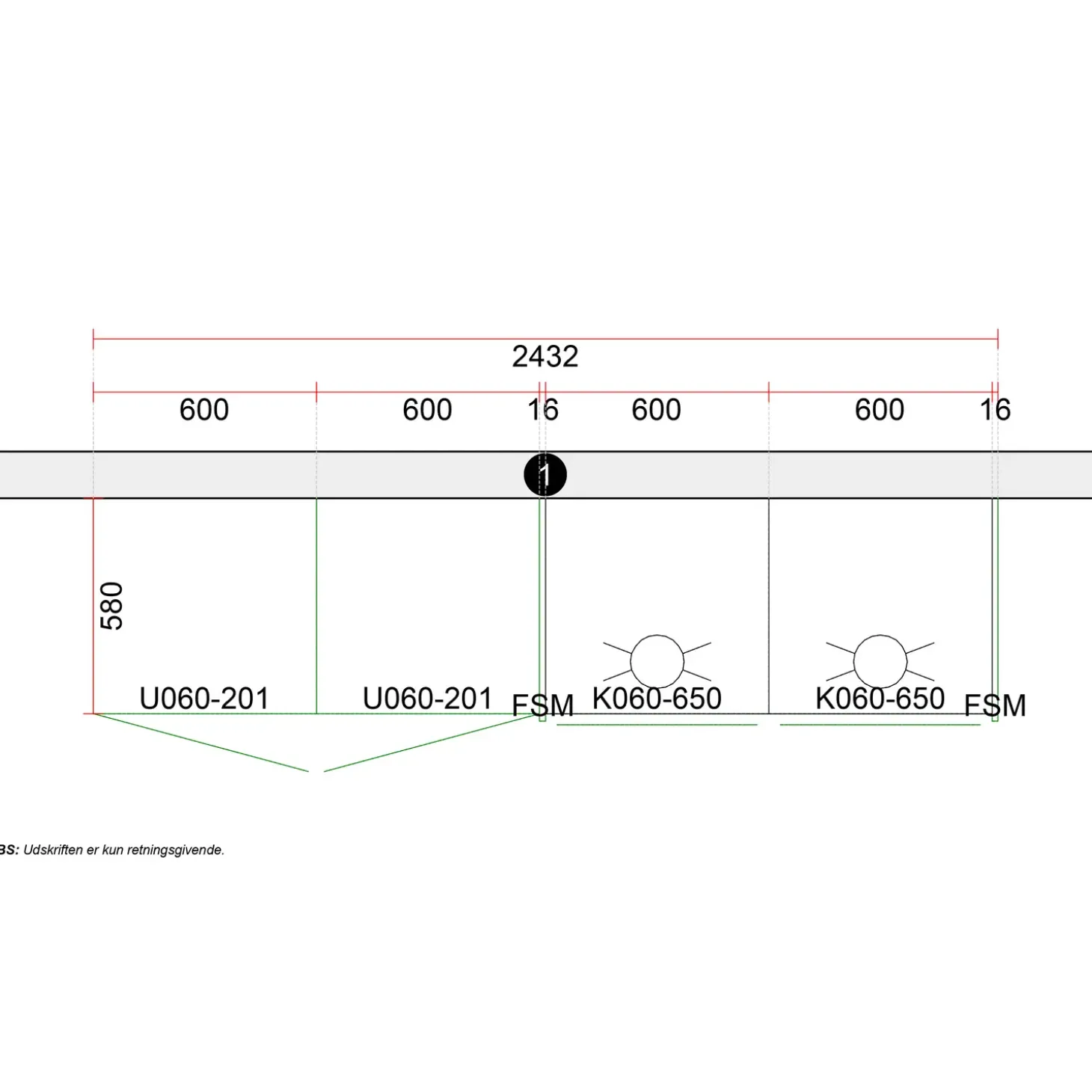 – 2 x K060-650 Skuffekassette med 1 skuffe og deludtræk