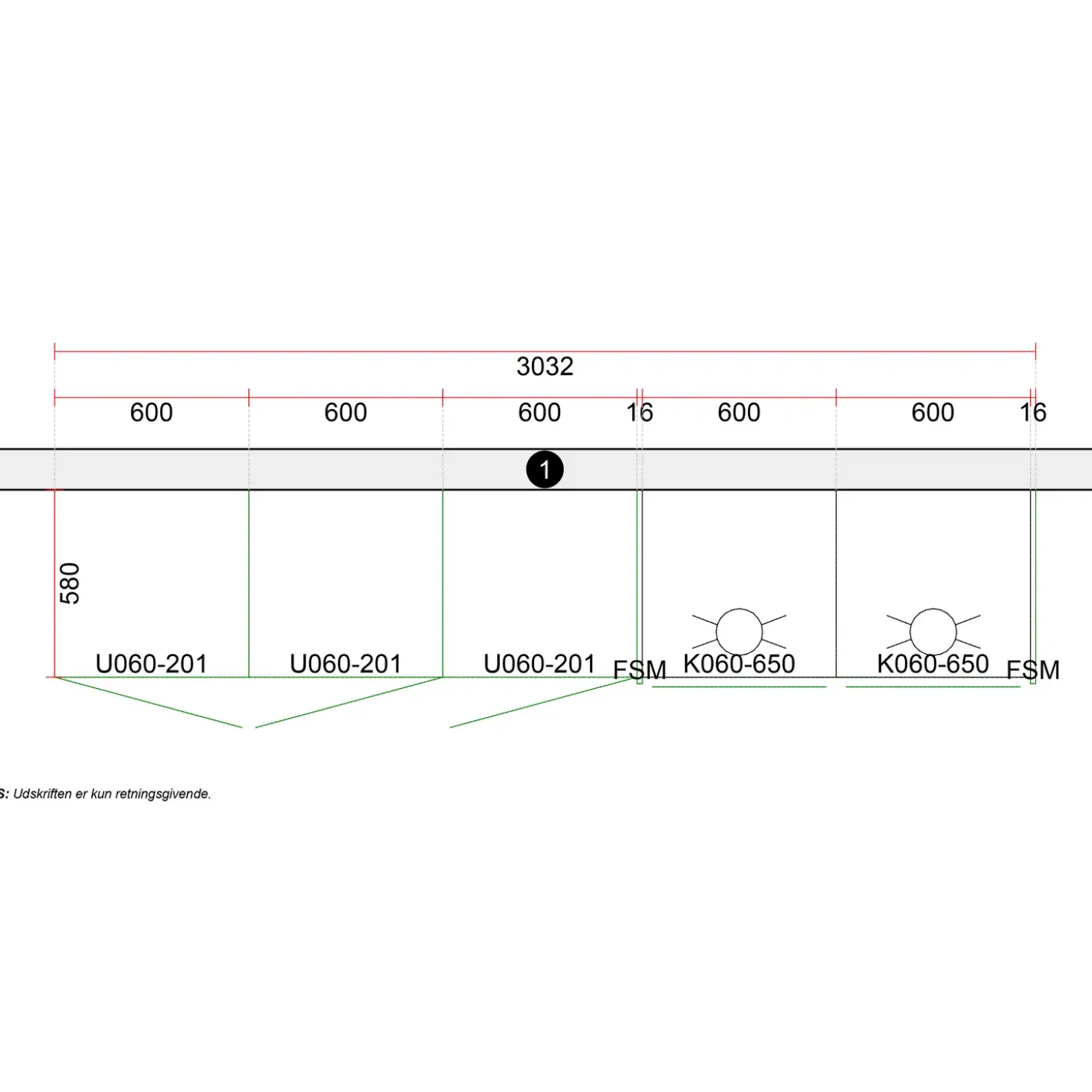 – 2 x U060-201 Hyldeskab, m/ 1 hylde