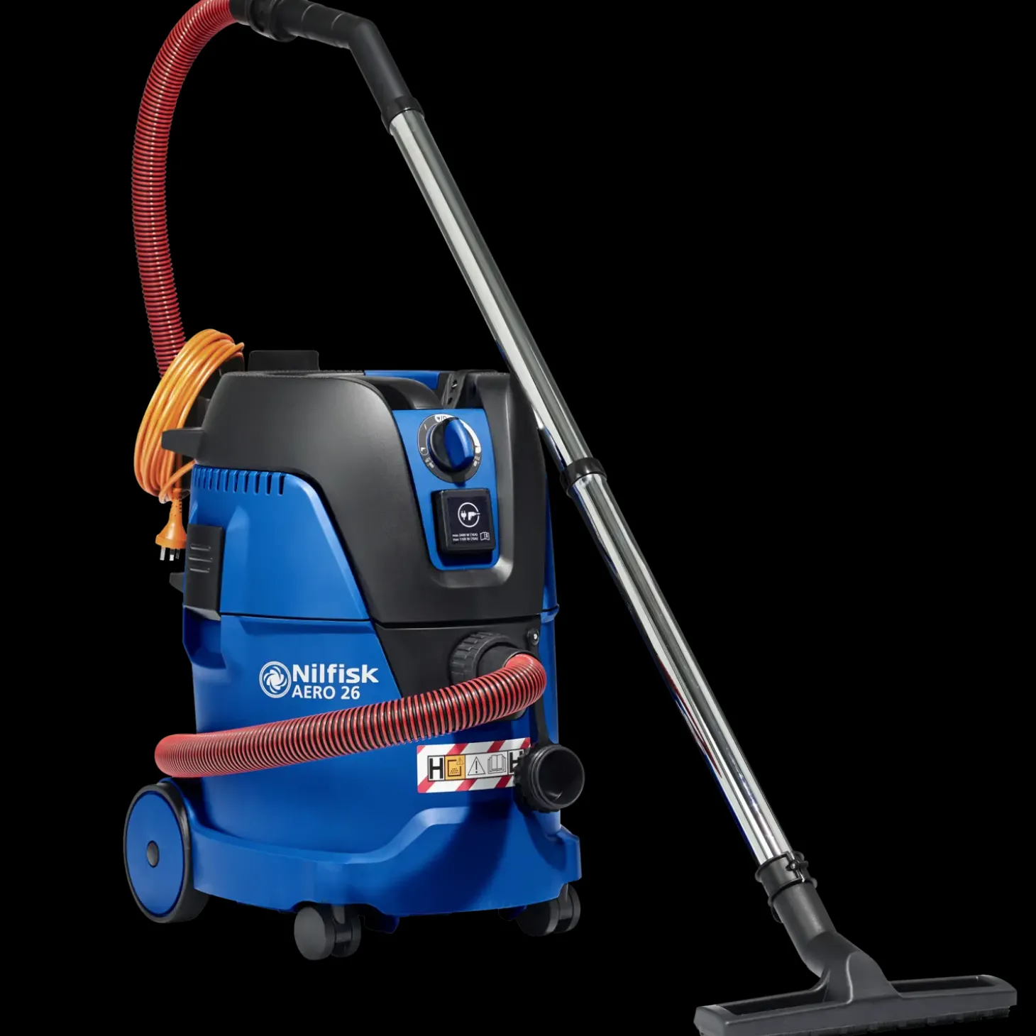 Nilfisk AERO 26-2H PC våd-/tørsuger med Push&Clean filterrensesystem. Velegnet til alle opgaver med opsamling af sundhedsfarligt H-Klasse støv indenfor industri, byggeri og tilsvarende.